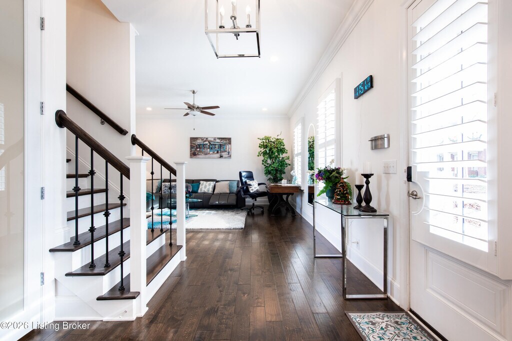 Welcome to 9507 Civic Way,a beautifully maintained fully furnished 3 bedroom,2.5 bath townhome located on the perimeter of the established - highly sought after,Norton Commons community. This 1,877-square-foot residence,built in 2017,offers a sophisticated blend of modern convenience and classic southern style. Gleaming hardwood floors flow throughout the main living level and extend to the second-floor hallway and spacious primary bedroom,creating a warm and cohesive aesthetic. The home's functional layout places all three bedrooms and a thoughtfully positioned laundry room on the second level for maximum efficiency. The property provides significant flexibility for both homeowners and investors.