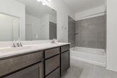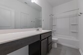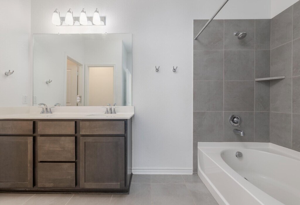 This beautiful rental home blends comfort, style, and functionality with an inviting open-concept design. The expansive great room serves as the heart of the home-with abundant natural light creating a bright, airy atmosphere. Tucked away in the back of the house, the primary suite offers a true retreat. Enjoy a spacious primary bathroom featuring a double vanity, a luxurious garden tub, and a generous walk-in closet. The thoughtfully designed kitchen is equally impressive, boasting sleek stainless steel appliances, a large island ideal for meal prep or casual dining, and a convenient corner pantry for added storage. A well-sized second bedroom also includes its own walk-in closet, ensuring plenty of storage space for everyone. Available now!