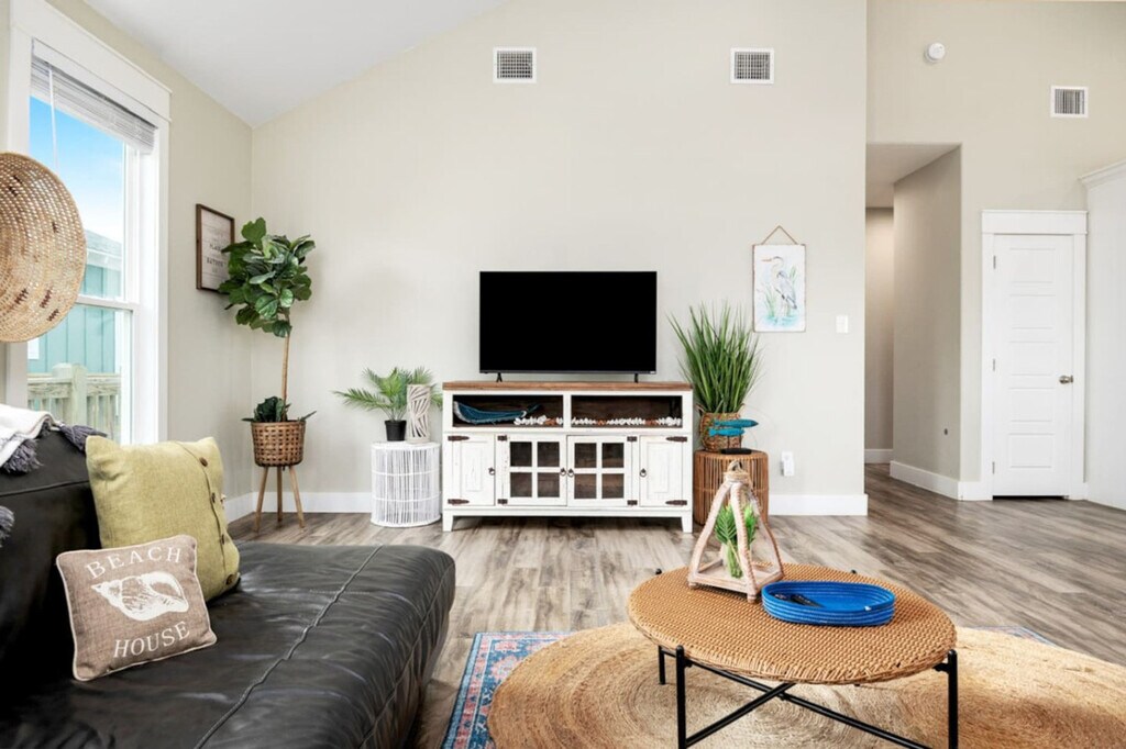 Welcome to the perfect set-up for large groups in these two identical, side-by-side beach houses, each featuring 3 bedrooms with a total of 10 beds, including 1 king and 4 queen beds. One house offers 2 bathrooms and the other 3, both with similar kitchens and layouts, providing a cohesive experience for up to 18 guests. Located just a 5-minute walk from the beach, these homes are ideal for family reunions or group getaways, offering spacious comfort just steps from the shore. Each house offers a range of comfortable and well-appointed spaces, perfect for large groups. The bedrooms include 4 queen beds and 2 master suites with king beds and private en-suite bathrooms, providing added comfort and privacy. Both houses have large living rooms designed for group gatherings, with plenty of seating and open layouts perfect for socializing or relaxing. Each house comes with a fully equipped kitchen, complete with modern appliances and everything needed to cook meals for your group. Additional features include laundry rooms for convenience during longer stays, outdoor showers for rinsing off after a day at the beach, and charcoal grills for a barbecue. Located just a short walk from the beach, these homes are perfectly situated for easy access to the shore. Ideal for group vacations, family reunions, or gatherings, these side-by-side homes offer space, comfort, and convenience. The entirety of the houses are yours to enjoy, with the exception of the attic, the renter’s closet, and the garage of each house. Maximum occupancy is 18 people, and any additional guests must be pre-approved prior to the final reservation. Only registered guests are allowed at the house, and any visitors must be disclosed and approved. Parking is only allowed on the driveway, and care should be taken not to hit the pilings with your vehicle. Smoking, parties, and events are prohibited, and engaging in illegal activities on the property is not allowed. Guests are expected to maintain cleanliness throughout their stay, and any accidental damage should be reported immediately. Noise should be kept to a minimum during nighttime hours. Grilling is only permitted downstairs on the patio area, and the grill should be cleaned after use. Sand should be rinsed off in the shower under the house, and sandy shoes left on the deck by the front door. Feminine hygiene products and grease should not be flushed or poured down the drains to avoid damage to the septic system. If guests are asked to leave due to irresponsible behavior, no refund will be given for lost days. In case of tropical storm or hurricane evacuation, a full refund or credit for lost days will be provided. The beaches at Crystal Beach have no lifeguards, and swimming is at the visitor’s own risk. The property owners are not responsible for any accidents, injuries, or illnesses that occur on the premises, nor for loss or damage of personal property. By accepting the reservation, renters assume the risk of any harm arising from their use of the premises. [SI]