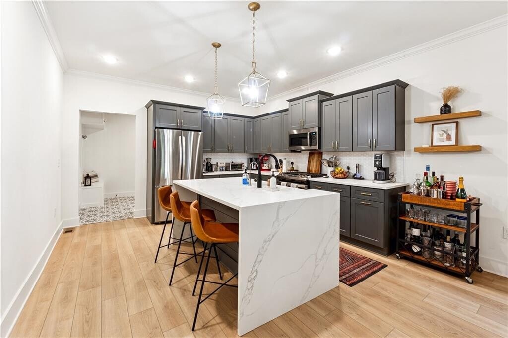 This is a fully furnished 3BR/2.5BA home in the heart of West Midtown,Atlanta. Recently renovated home that blends historic charm with modern design,featuring a contemporary,mid-century modern aesthetic throughout. The main level includes a spacious primary suite with double closets and en-suite bath,plus a stylish half bath for guests. Upstairs,you’ll find two bedrooms with a shared bath,along with a versatile flex room which serves as an office and home gym. The updated kitchen is outfitted with premium appliances—stainless steel refrigerator,dishwasher,gas range,Breville toaster oven,Ninja appliances,coffee maker,and more—making it ideal for cooking and entertaining. Outside,enjoy a driveway for two cars (plus street parking),a furnished patio with TV,pellet grill/smoker,and a Solo Stove fire pit. Stylish,comfortable,and move-in ready. Situated in the desirable Howell Station neighborhood,this home offers walkable access to Knight Park and Westside Park,Atlanta’s largest green space. There is direct Beltline access 500 feet from the home. Walking distance to West Side Paper and West Midtown restaurants,shops and more.