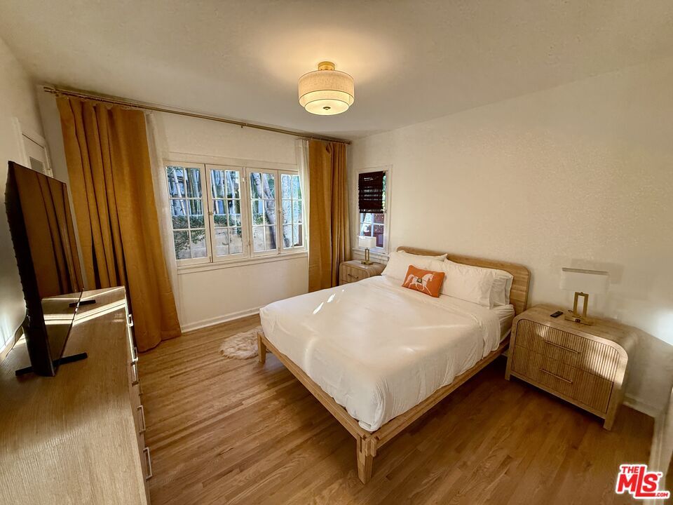 Bold, fashion-forward interiors meet classic 1920s Spanish character in this FULLY FURNISHED, truly move-in-ready 2-bedroom West Hollywood home packed with turnkey, Airbnb-style conveniences. Just bring your suitcase! Designed to feel like a boutique hotel with serious personality, the home features dramatic, curated furnishings, layered textures & beautiful window treatments, and statement lighting throughout. Enjoy a gorgeous private front yard, one garage parking space, and easy street parking for guests - additional parking permits available with lease. The stylish chef's kitchen is fully stocked and beautifully finished with custom solid-wood cabinetry, quartz countertops and backsplash, chic espresso-colored appliances, a built-in drinking water filtration system, and an under-counter microwave drawer! Plus a large stacked washer/dryer for effortless daily living. The designer bathroom showcases custom tile, a solid oak vanity with marble top, and a lighted mirrored medicine cabinet. Original hardwood floors, an authentic fireplace, antique-gold fixtures, and a lush privacy hedge surrounding the yard create a private, cottage-style escape with serious personality! Pet-friendly and just moments from Plummer & Poinsettia Parks, Trader Joe's, Smart & Final, and the best shops, cafes, and nightlife along bustling Santa Monica Boulevard and Melrose Ave -- this is West Hollywood living at peak convenience and style! Home never felt so good! MLS# 25625305
