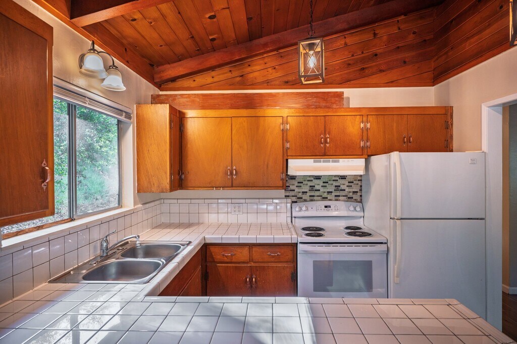 Property Id: 180865 Step inside and the first thing you'll notice are soaring vaulted wood beam ceilings with tongue-and-groove pine, a detail you just don't find in most rentals. Paired with brand new flooring throughout, the space feels warm, open, and full of character. The kitchen and living area are flooded with natural light from large windows and a sliding glass door that opens onto your own private patio, surrounded by mature trees and completely separate from the neighboring unit. Three spacious bedrooms with vaulted ceilings and built-in closet storage. Open kitchen with full appliances. Garage plus driveway parking. Washer and dryer hookups already in the unit. Minutes from downtown Sonora with easy access to restaurants, breweries, coffee shops, boutiques, grocery stores, and more. Right next to Sonora High School and a short drive to Columbia College. Rent $2,195/month. Deposit $3,000. One-year lease. Available now. Tenant pays PG&E. TUD water included up to base usage allowance. No smoking. Pets considered on a case-by-case basis. Pre-screening required via TurboTenant.
