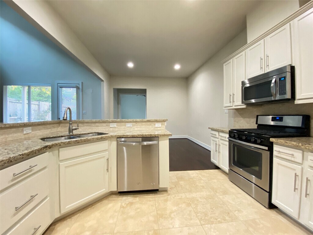 Ideally located in a quiet and gated community in Spring Branch,you are minutes away from the booming City Centre with easy access to both 1-10,610 Loop and Beltway 8. This three bedroom and study flex room home has it all with a open modern kitchen and living space with white cabinets,granite countertops,engineered hardwood floors,a chef's kitchen with a gas range and stainless steel appliances. High ceilings through out the house with ceiling fans for those hot summers. The spacious primary suite has a large walk-in closet,vaulted ceilings and plenty of natural light. Primary bath has double sinks,soaking tub and separate shower. There is 2 nicely sized bedrooms both with walk in closets. Builder upgraded backyard has a covered patio area with paved stone and gravel for easy maintenance. Patio also has a gas line installed so no more making trips to get the butane tanks refilled. MLS# 13555767