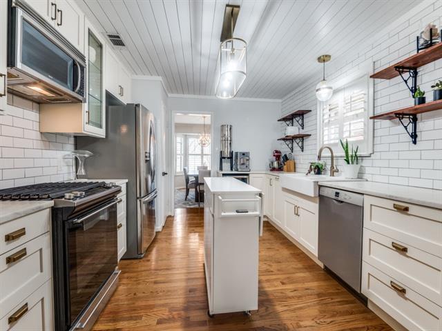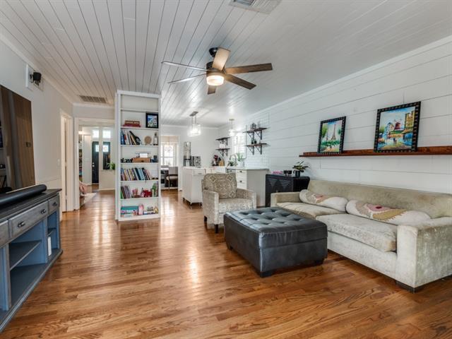 Nestled in the highly sought-after L Streets neighborhood & just a block from award winning Lake Highlands Elementary, this stunning single-story white brick home boasts an inviting open floor plan with striking hardwood floors. Upon entering, you're greeted by a bright and airy home office, perfect for remote work. This space seamlessly flows into a spacious living room, creating an ideal setting for both relaxation and entertaining. On the opposite side of the entry, the elegant formal dining room features beautiful bay windows and a stylish decorative light fixture. A second living area, highlighted by charming shiplap ceilings and walls, provides a cozy retreat for gatherings or quiet evenings. The kitchen is a true showpiece, complete with a farmhouse sink, gas cooktop and oven, stainless steel appliances, and open farmhouse-style cabinetry, offering both charm and functionality. A convenient mudroom provides ample storage for coats and backpacks. The home offers three generously sized bedrooms and two well-appointed full bathrooms. Step outside to the expansive backyard, where a gorgeous deck overlooks the oversized yard - perfectly suited for a future pool. Situated on a peaceful street, this home offers tranquility while remaining centrally located in Dallas. Additional highlights include a detached two-car garage and proximity to White Rock Lake, local restaurants, and coffee shops.