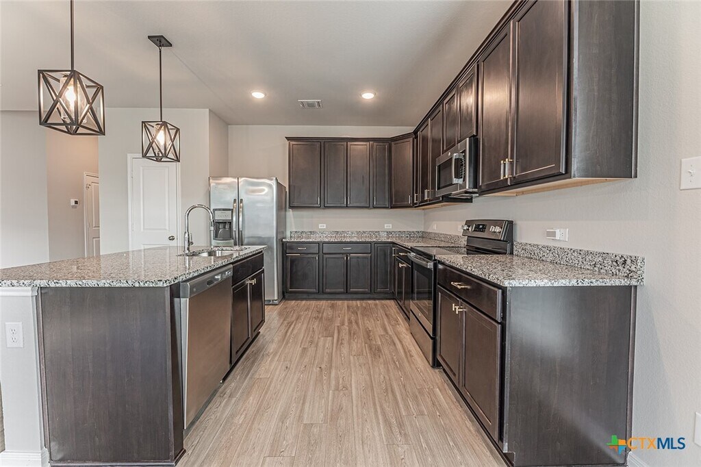 Welcome to 9511 Caemlyn Cove,a beautiful home located in the vibrant city of Killeen,TX. This property boasts four spacious bedrooms,all carpeted for your comfort and each featuring walk-in closets for ample storage. The home also includes two full bathrooms,ensuring plenty of space for everyone. The heart of the home is the kitchen,which is equipped with a center island and a farmhouse style sink,creating a warm and inviting atmosphere. The vinyl plank flooring throughout the rest of the house adds a touch of elegance and is easy to maintain. Outside,you'll find a backyard storage shed and a sprinkler system,making yard maintenance a breeze. As an added convenience,quarterly pest control is covered,providing peace of mind. Experience the perfect blend of comfort and convenience.