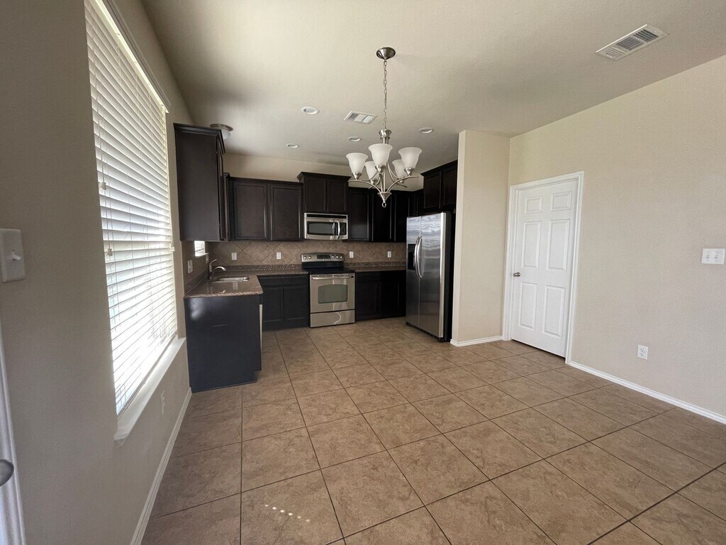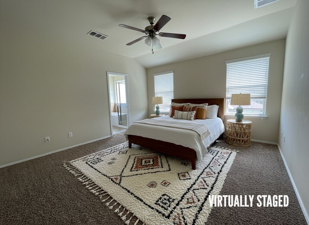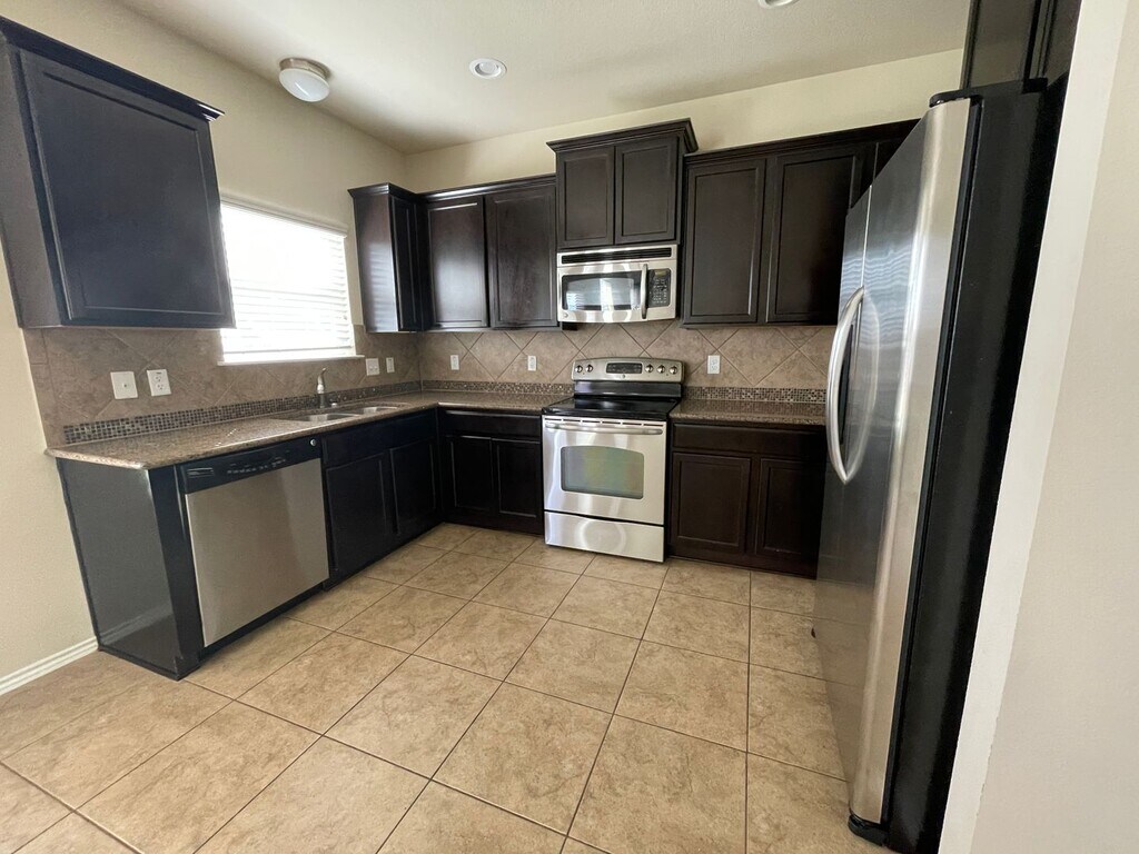 View 360 Virtual Tour: Beautiful 2-story home with 3 bedrooms, 2.5 baths, and 1,999 sq. ft. Features include a loft, granite countertops, stainless steel appliances, master suite with garden tub and walk-in closet, 2-car garage, and community pool access. Covered patio, fenced yard, and pet friendly with deposit. Disclaimer: The furnishings or enhancements shown are AI-generated and intended for inspiration only. They may not reflect the actual scale, condition, or current features of the property.