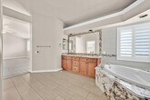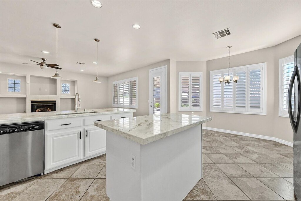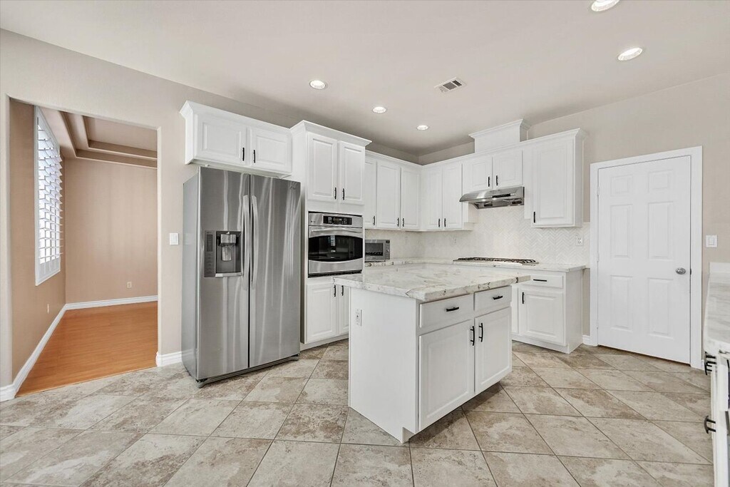 With a large open floor plan this home is perfect for a family in need of 5 bedrooms and 4 bathrooms! Upon entry you'll notice the vaulted ceilings and warm wood flooring! Recently renovated kitchen offers granite countertops, stainless steel appliances, built-in gas cook top, single basin sink and a kitchen island! Oversized primary suite features dual vanity sinks with granite countertops, custom walk-in shower and large separate tub paired with a generously sized walk-in closet! Rare find with bedroom and 3/4 bathroom on first floor! Maturely landscaped backyard with covered patio and turf grass! Other features include plantation shutters, crown molding throughout the home as well as a dedicated laundry room with utility sink and a 3 car garage with epoxy sealed floor! All this perfectly located just minutes from shopping and dining just off I-215! All applications must be submitted online at Application fee $30 per adult non-refundable. Any incomplete applications may be rejected. All applications are subject to credit history, income verification and rental history.