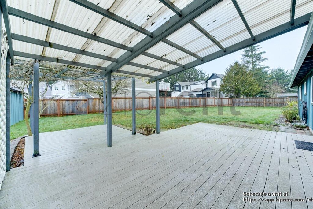 This property is available. Please inquire on this site to schedule a showing. Welcome to this charming single-story home located at 9516 Holly Drive, Everett, WA 98204. This beautifully updated residence boasts a vibrant exterior with a welcoming purple front door, setting the tone for the stylish interiors. Inside, you'll find an open-concept living area with sleek laminate flooring and a cozy fireplace, perfect for relaxing evenings. The modern kitchen is a chef's delight, featuring stainless steel appliances, granite countertops, and a chic tile backsplash. Natural light floods the space through large windows and sliding glass doors that lead to the expansive backyard. The home offers a spacious primary suite with plush carpeting and ample closet space, providing a comfortable retreat. The additional bedrooms are equally inviting, with neutral tones and plenty of room for personalization. The bathrooms are tastefully designed with contemporary fixtures and finishes. Outside, the generous backyard is fully fenced, offering privacy and a great space for outdoor activities. A covered patio area is ideal for year-round entertaining. Located in a convenient neighborhood, this home is close to schools, shopping, and parks, making it a perfect choice for those seeking a blend of comfort and convenience. Available: NOW Heating: Baseboard Cooling: None Appliances: Refrigerator, Range Oven, Microwave, Dishwasher Laundry: In Unit Parking: Off Street, 3 spaces Pets: Dogs Allowed, Small Dogs Allowed, Large Dogs Allowed, Cats Allowed Security deposit: $3,225.00 Included Utilities: None Additional Deposit/Pet: $500.00 Disclaimer: Ziprent is acting as the agent for the owner. Information Deemed Reliable but not Guaranteed. All information should be independently verified by renter.