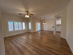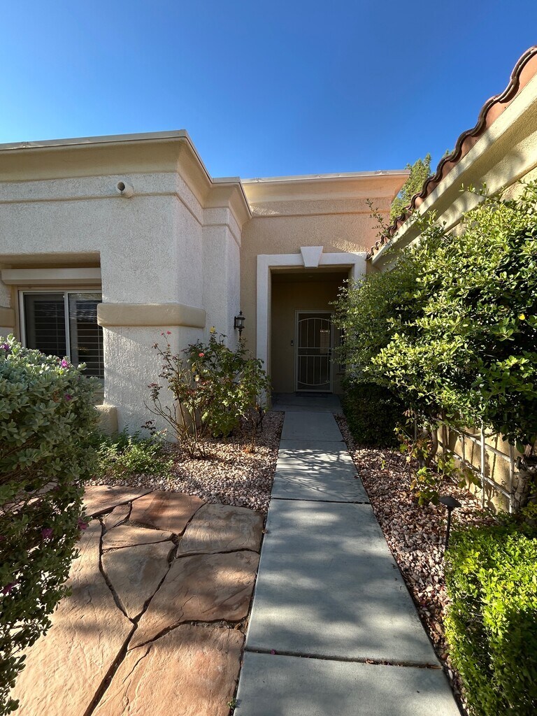 Sun City Summerlin a 55+ Community! - With resort style amenities, golf courses, club houses, restaurants, exercise and meeting rooms, and an active social calendar! This highly maintained townhome offers luxury features and a relaxing private front courtyard, creating a light and airy atmosphere throughout. Inside, you'll find luxury vinyl plank flooring, 5 ½" baseboards, and soft-close cabinetry. The exceptional kitchen showcases quartz countertops, an elegant arabesque backsplash, stainless steel sink, and a moveable island. A water softener, modern faucets, and Rolladen shutters for added comfort and security.