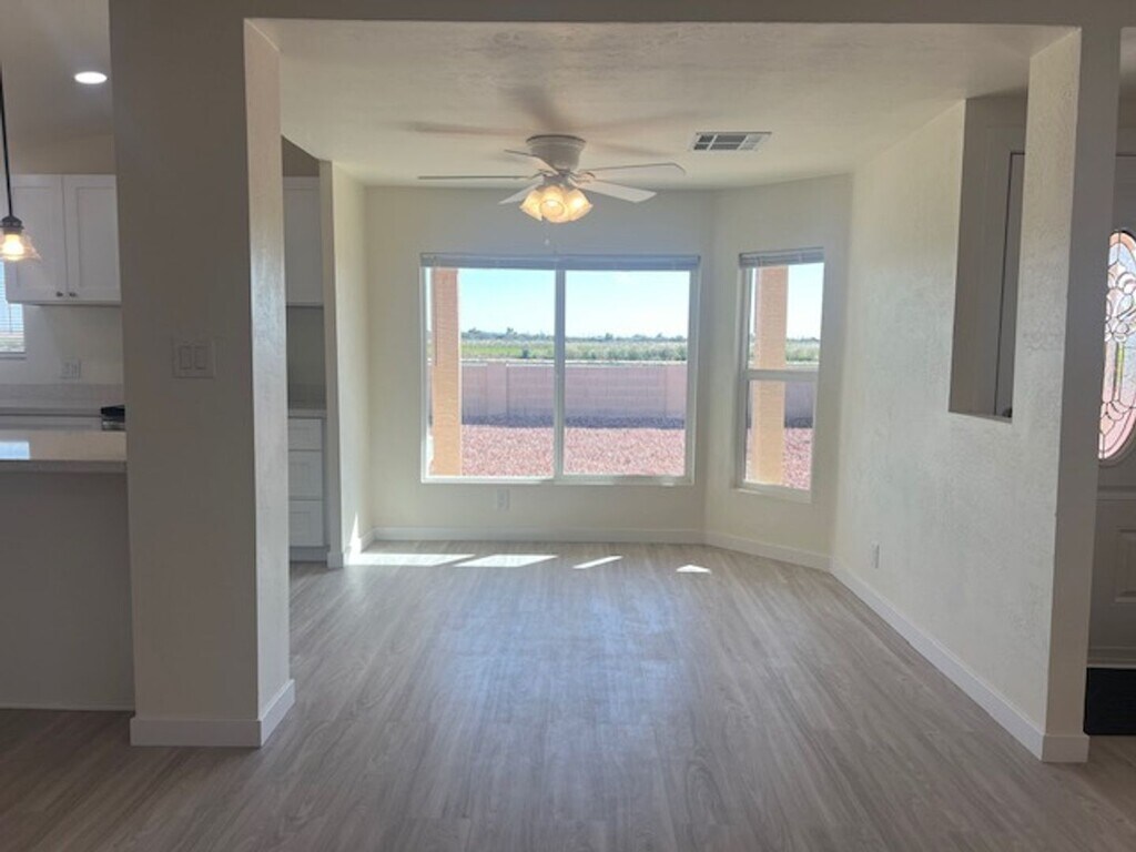 Everything in this home is brand new!! The owner completely remodeled this home and put amazing finishes in. Updated Kitchen, bathrooms, flooring, paint, all brand new appliances, you name it, its brand new! The spacious garage has a door access that leads directly into the home. The yard backs to the beautiful, quiet and serene agricultural area. Come live in the sought-after active adult community of sun lakes! Age restricted community, atleast 1 person needs to be 45 or older, no on under the age of 19.