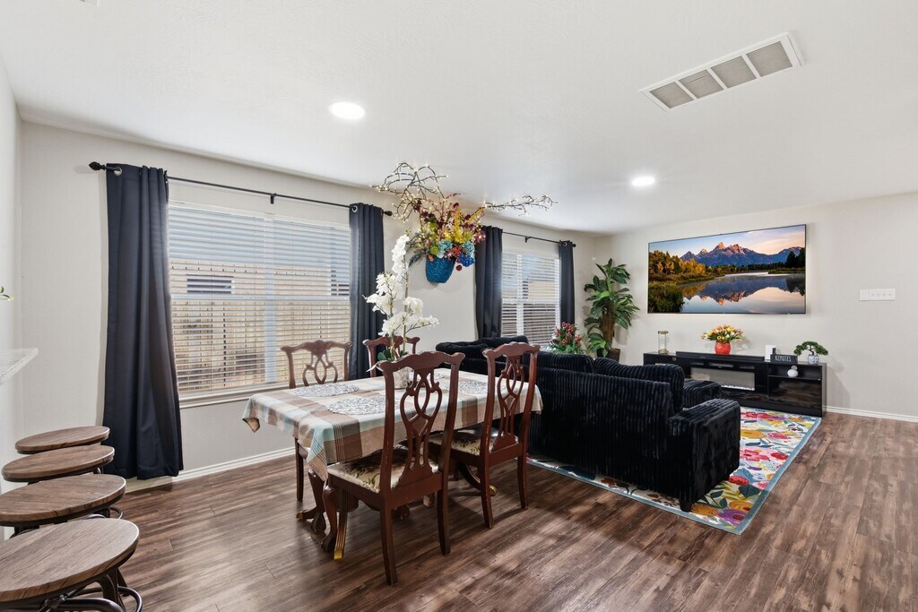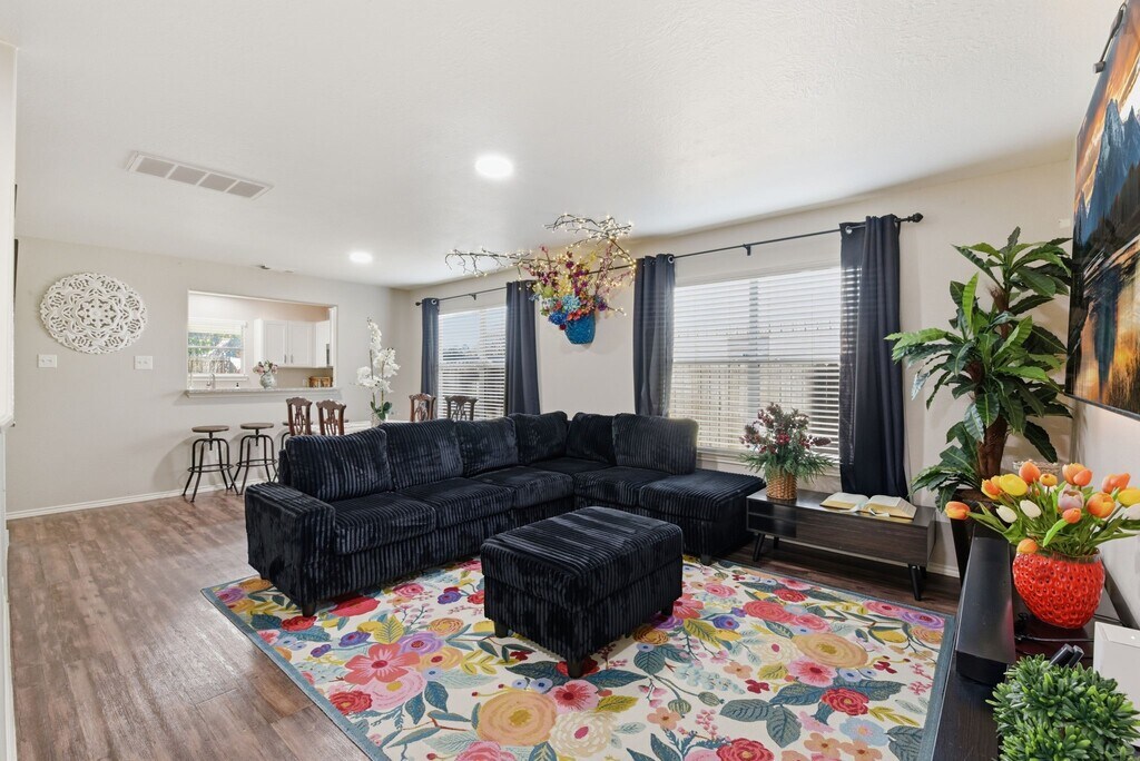 Spacious fully furnished 2-story home located in a quiet suburban area of Houston,TX,approximately 15 minutes from Downtown and IAH Airport. This well-maintained residence features 4 bedrooms,2.5 bathrooms,and multiple living areas,offering flexible space ideal for families,professionals,or corporate tenants. The open and functional layout includes generous common areas perfect for entertaining,relaxing,or working from home. The large kitchen opens to the main living space,while an additional living area provides versatility for a home office,media room,or secondary lounge. This property offers a huge backyard,a 4-car driveway,and additional street parking—ideal for multiple vehicles or guests. The home is fully furnished with thoughtfully selected furniture,making it move-in ready and perfect for tenants seeking convenience without sacrificing comfort.Ideal for long-term furnished leasing,relocation tenants,or corporate housing needs. MLS# 7266623