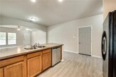 Ready for February 07 move in. Welcome Home to an inviting space that combines efficiency, comfort and style! Enjoy a thoughtful layout designed to give plenty of room for everyday living or entertaining. Enter into the home and you'll find the open concept living, dining, and kitchen that flow seamlessly together. The large open kitchen is sure to keep any chef happy, adorned with an abundance of cabinet and counter space, breakfast bar, all appliances including refrigerator. The dining room area is great for gathering around the table, while the breakfast bar gives an option for a more casual eating space. This large open area is perfect for creating a sense of inclusion between spaces. The bedrooms all sit toward the rear of the home. The primary bedroom offers an en suite bathroom with plenty of vanity space and a huge walk in closet. Secondary bedrooms share a full bathroom just down the hall. All bedrooms are sizeable, and all have generous closet space. Wood look tile flooring throughout the home gives a modern aesthetic and makes for easy clean up! Lots of windows give a naturally light and bright feel to the home. Relax on the covered front porch or in the private fenced in backyard space perfect for soaking up the sun, or gazing at the stars. Tandem style garage gives space to house 2 cars inside or 1 car and room for storage. Home is in a great location, with quick easy access to major thoroughfares, shopping, dining and green spaces. View today!