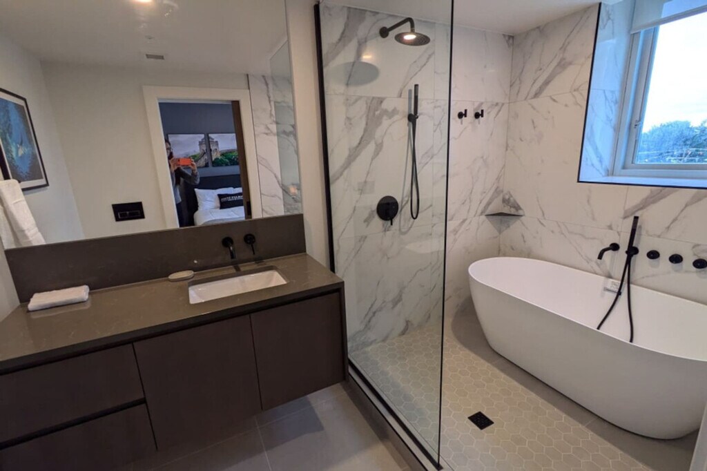 Experience elevated living and feel at home in this stylish 2-bedroom apartment in the heart of Victoria’s Harris Green district. Designed to cater to business travelers, families, or couples, this spacious and contemporary apartment offers the perfect balance of comfort and sophistication for both work and leisure. Elevator access is available for added convenience. Unwind in the spacious and inviting living area, featuring a plush sofa and a Smart TV with streaming services. The sleek, modern, fully equipped kitchen boasts ample counter space and premium appliances. Each of the two tranquil bedrooms features scenic neighborhood views for restful nights. A full bathroom with high-end fixtures provides the perfect setting to refresh and rejuvenate, complemented by an additional full bathroom with a stylish bathtub. Enjoy peaceful moments on your private balcony, with stunning views of nearby attractions. Indoor parking is available up to availability with a fee, and reservation is required. An IPTV Box with more than 300 channels is available on request with a fee. Cribs and high chairs are available on demand. Complimentary pet bowls are available to make your furry friend feel welcome. Situated in the heart of Victoria’s Harris Green district, this centrally located apartment is known for its vibrant urban atmosphere and proximity to key city attractions, providing a perfect blend of downtown living with easy access to nature and cultural experiences. Victoria's Inner Harbour is a 10-minute walk, Chinatown is a 5-minute walk, Beacon Hill Park is a 15-minute walk, and the Royal BC Museum is a 10-minute walk. The Johnson Street Shopping District is lined with boutique stores, cafes, and popular restaurants. The area is well-served by numerous bus routes, with the nearest stop just steps away on Johnson Street. With a Bike Score of 97, the neighborhood is extremely cyclist-friendly, featuring bike lanes and nearby bike rental shops. A Walk Score of 99 makes it easy to navigate the area on foot. A pack ‘n play is available on request. This is a smoke-free atmosphere. With high-speed Wi-Fi and a dedicated workspace, this apartment supports productivity and relaxation for busy professionals. [SI]
