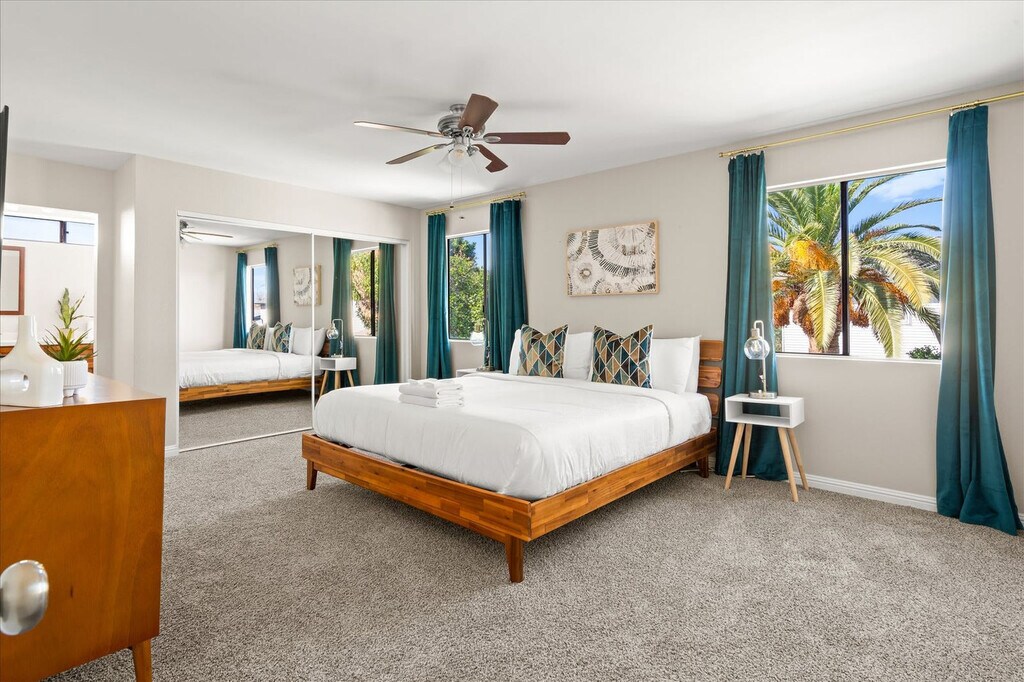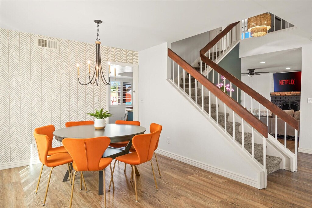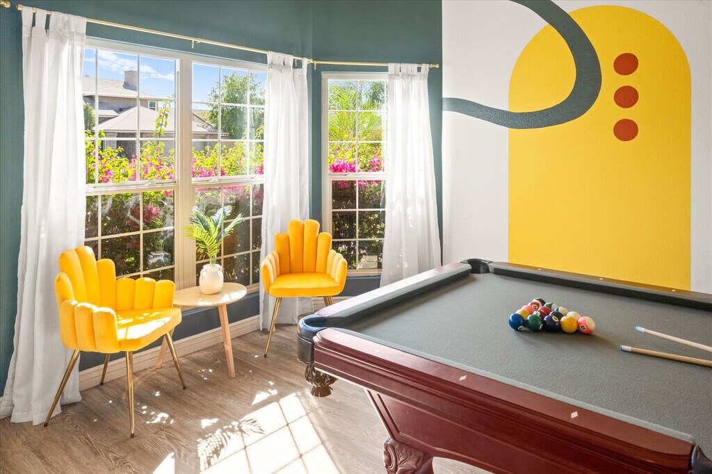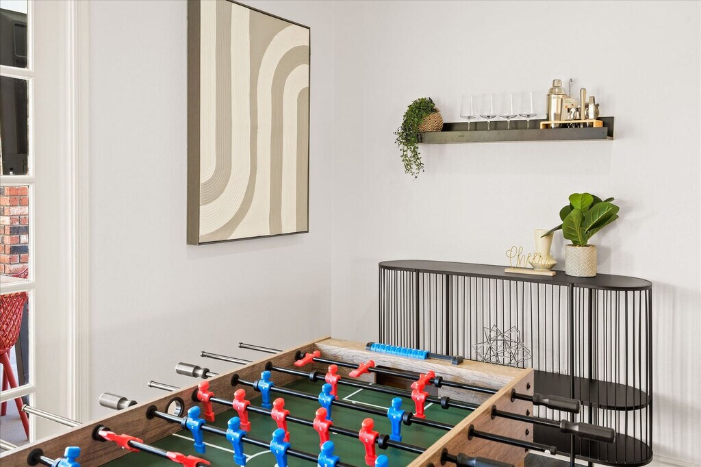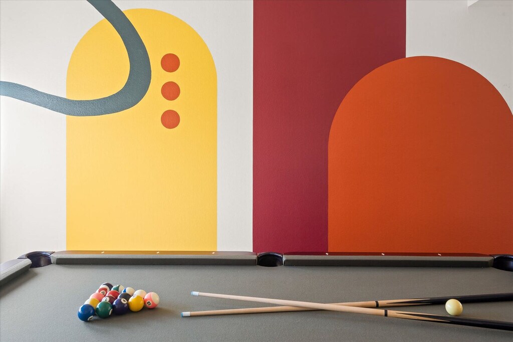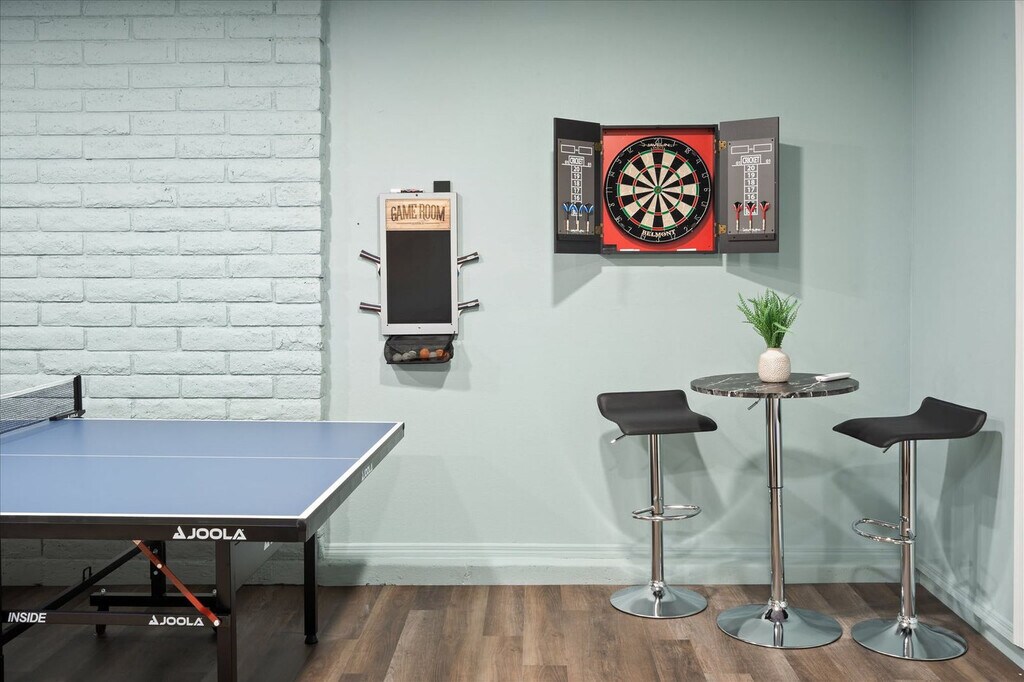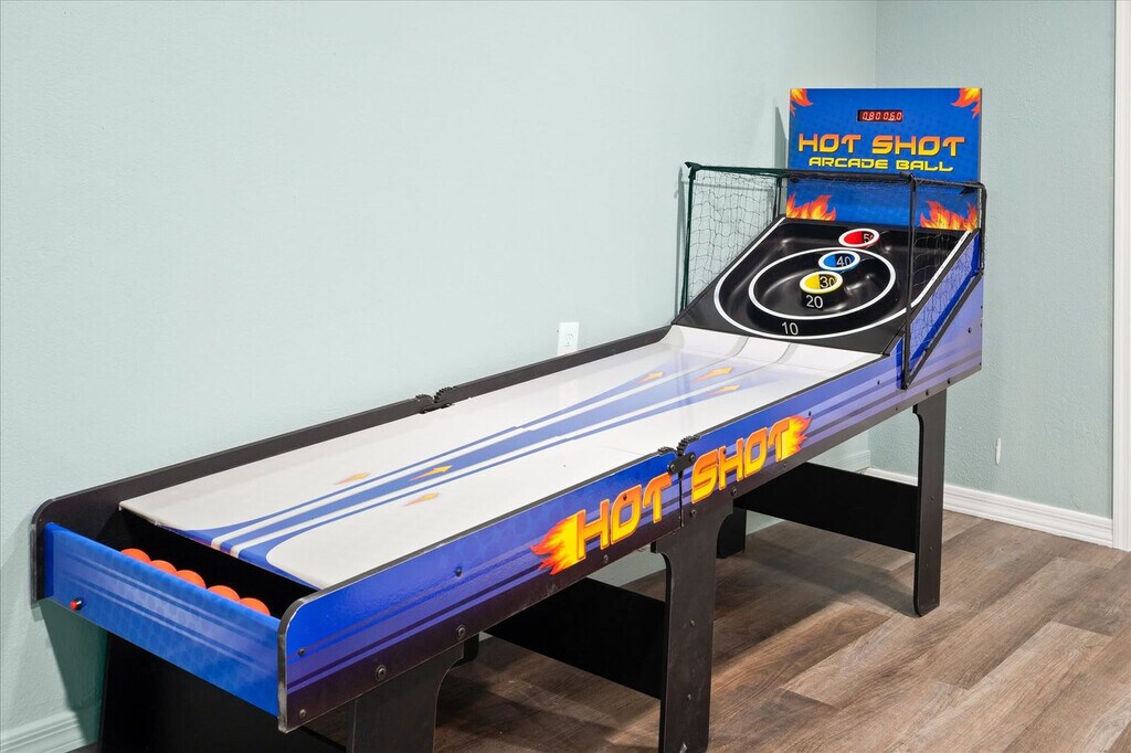 Feel at home in this spacious two-story, 5-bedroom home in Mesa, Arizona, designed for fun, relaxation, and unforgettable gatherings. This home comfortably accommodates up to 14 guests. Inside, you’ll find a thoughtfully designed space that blends comfort and entertainment. The fully stocked chef’s kitchen features high-end stainless appliances and ample cabinetry and cooking space. The full game room offers hours of entertainment with skee-ball, ping pong, darts, and arcade games. Outside, the resort-style backyard oasis is built for both play and leisure with a private pool, hot tub, basketball court, fire pit, outdoor patio/dining, BBQ grill, and corn hole. Up to 2 dogs are allowed for $125 per stay and no cats are allowed. Nearby attractions include Golfland Sunsplash (8 minutes), Downtown Mesa (13 minutes), Arizona Museum of Natural History (13 minutes), Tempe Town Lake & Marketplace (13 minutes), and Phoenix Zoo (18 minutes). Restaurants include Organ Stop Pizza (7 minutes), The Porch (12 minutes), Four Peaks Brewing Company (14 minutes), Venezia’s Pizzeria (14 minutes), and Rustler’s Rooste (18 minutes). Renting a car is a convenient option to explore the area. Rideshare services like Uber and Lyft are readily available. Check-in is at 4pm and check-out is at 10am. No parties are allowed and violations may result in immediate termination of the stay. An exterior camera is installed solely to monitor the cleaning team for quality and security purposes. Parking is available for 4 vehicles in the driveway and garage and street parking is allowed. Guests must be 25 years or older to book this property. Includes a dedicated workspace. Registration Number: LIC23-08297 [SI]