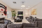 Gorgeous Silverado Ranch fully furnished home with 6 Bedrooms, 3 car garage, RV Parking and sparkling pool & elevated spa! Attractive curb appeal with extended driveway leading to 3 car garage and landscaping featuring palm trees and greenery in the front yard! Custom tile entry welcomes you to formal sitting room with fireplace and custom chandelier. Stunning kitchen featuring Custom cabinetry Stainless steel appliances and window over sink overviewing sparkling pool! Family room just off kitchen great for gatherings! Upstairs features more custom tile work (NO CARPET) and spacious rooms and bathrooms! Step out to the lush landscaped backyard with oversized covered patio looking over pool and elevated gazebo with ceiling fan perfect for enjoying evening company!