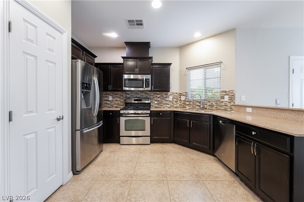 EVERY BEDROOM IS HUGE IN THIS HOME TRULY MAKING IT AN AMAZING FIND! This gated Las Vegas home offers a rare combination of space, layout, and value with one of the most desirable floorplans available. Featuring approx. 2,145 sq ft, 3 bedrooms, and 2.5 baths, every bedroom is impressively sized—no compromises here! The expansive primary suite feels like a true retreat, while the secondary bedrooms easily fit full furnishings, desks, or multi-use setups. The open kitchen includes stainless steel appliances, pantry, breakfast bar, and nook, flowing seamlessly into the main living area. Tile and carpet flooring throughout, plus a private backyard with covered patio for relaxing or entertaining. Enjoy community amenities including pool, spa, park, and amazing location. Exceptional layout, oversized rooms, and strong value—this one stands out! SOLAR PANELS ON THE HOME TO HELP REDUCE MONTHLY COSTS!
