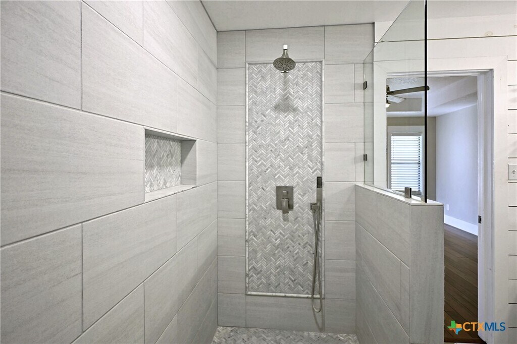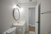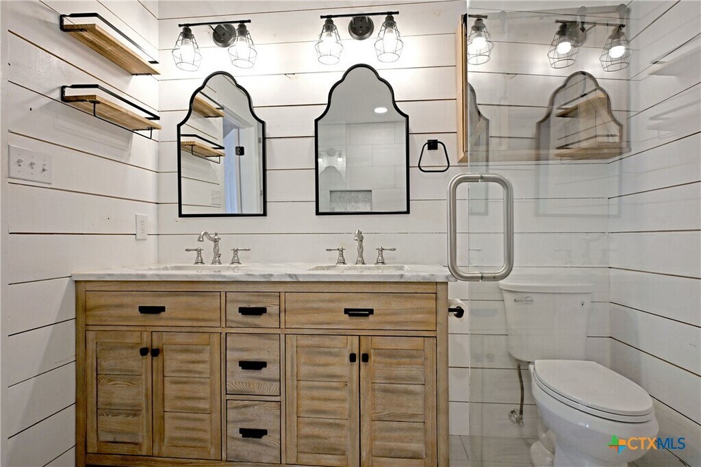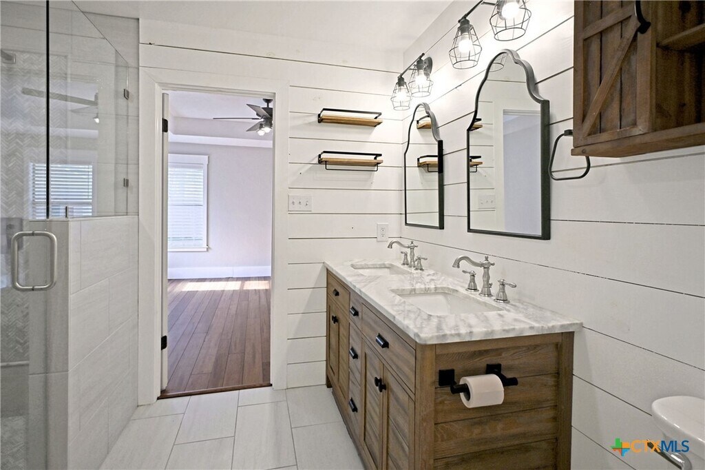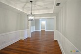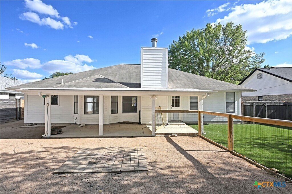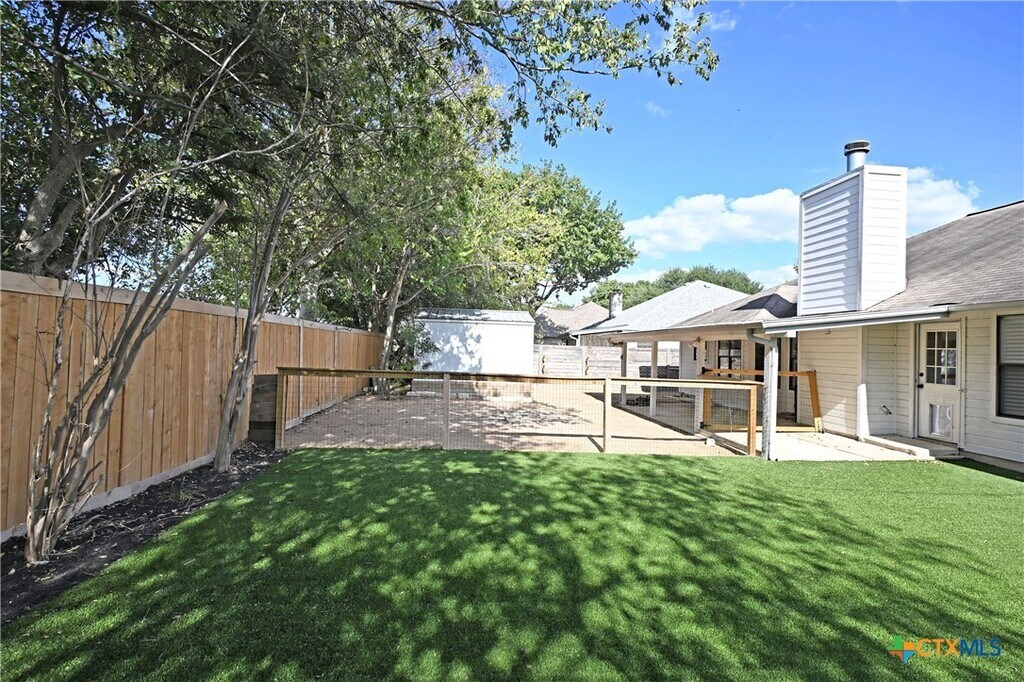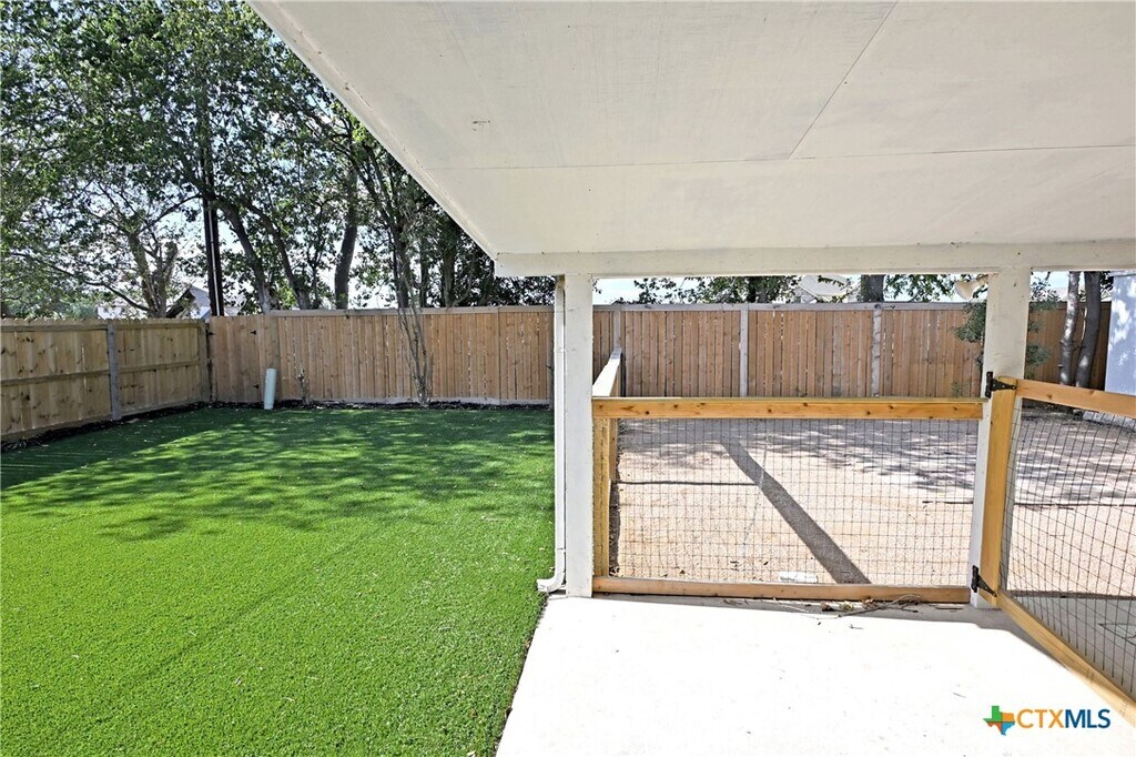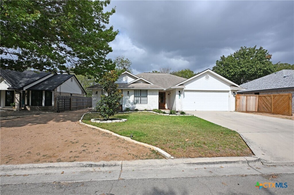 Welcome to the River Tree community where this stylish and well kept 3 bed/2 bath home with a thoughtfully designed modern farm house style interior. Enter into the inviting spacious living room with high beamed ceiling and cozy wood burning fireplace. Tour the gourmet kitchen with exquisite marble counter tops,white shaker cabinets,and the bay window that illuminates the dining area. Additional dining space is available in the dedicated formal dining area with a modern chandelier. Escape into the world of luxury in the primary bedroom suite with elegant tray ceiling that helps open up the space,walk-in closet,and a private bathroom with dual sinks,shiplap walls,and tiled walk-in double shower featuring dual shower heads. The backyard is dog friendly with astro turf and dedicated fenced in areas. Park your RV or other recreational vehicles on the left side of the home with gate. Enjoy the River Tree amenities with access to the Guadalupe River,playground,tennis court,and community pool.