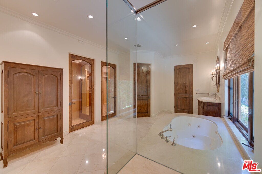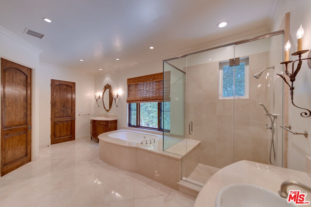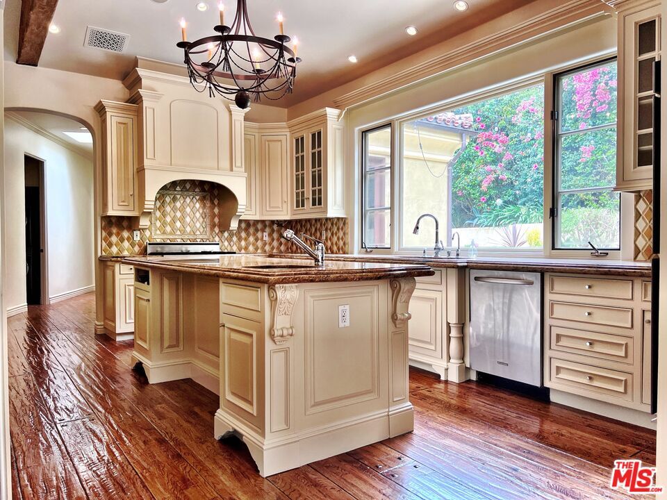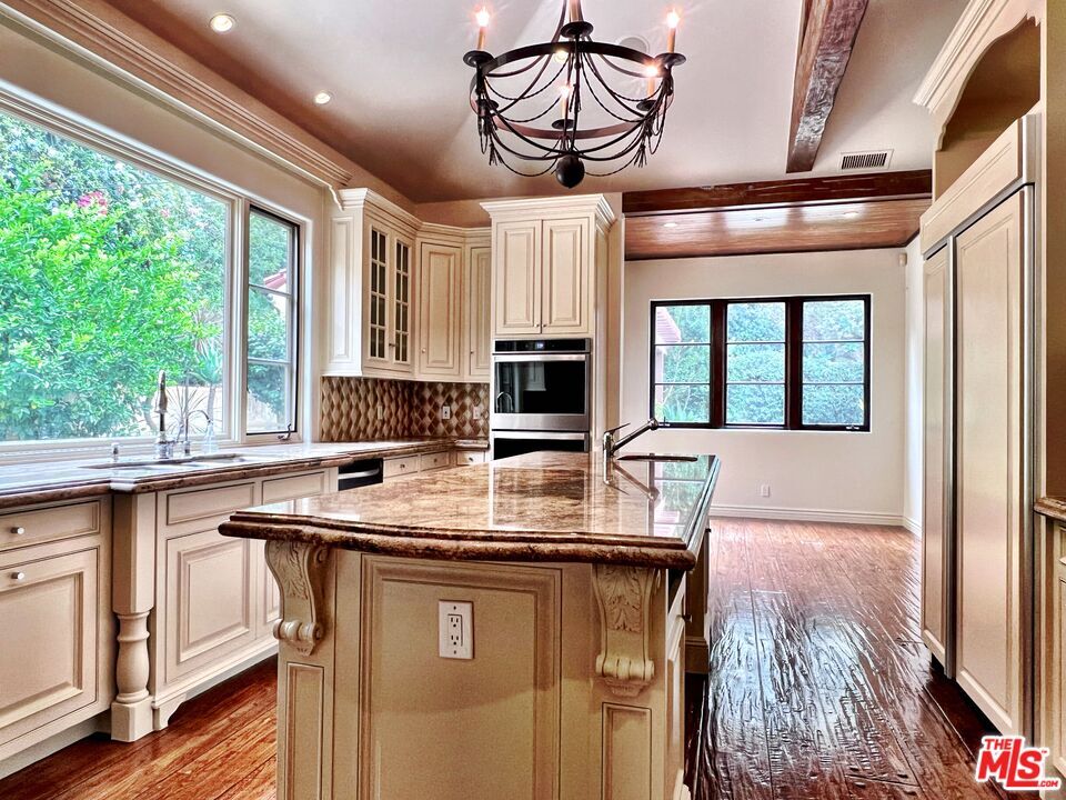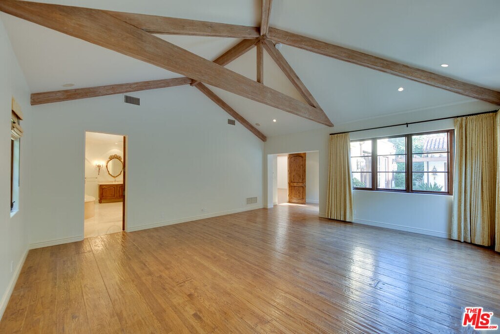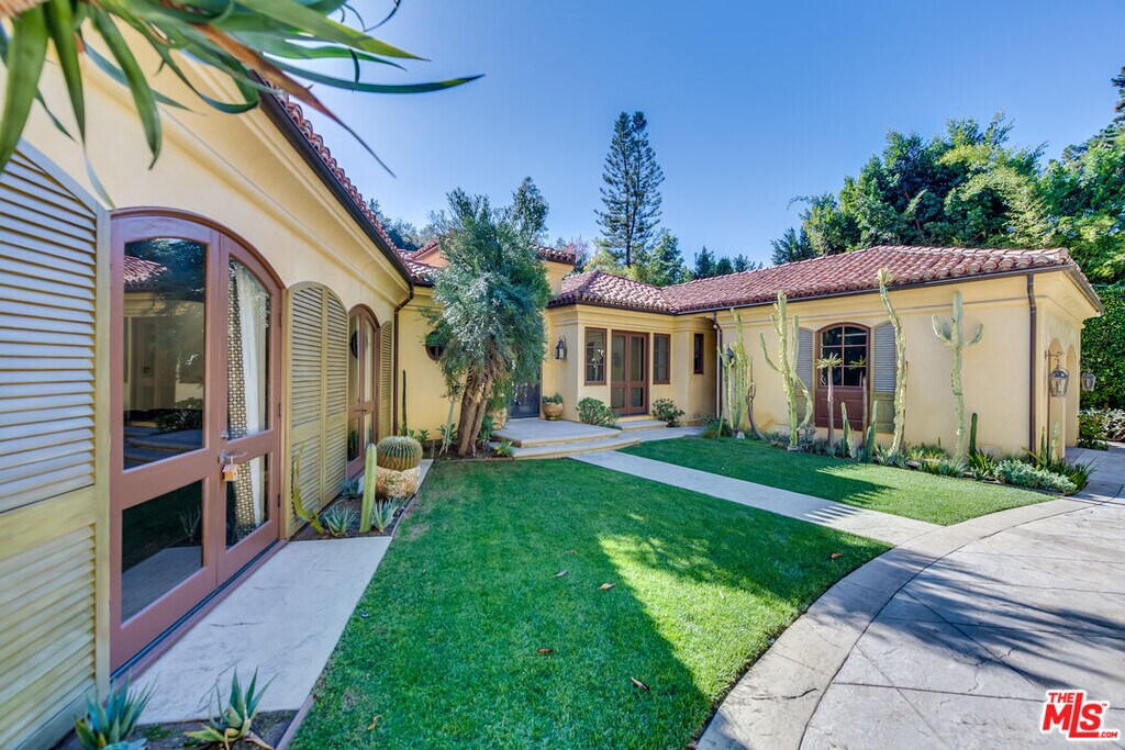 Some addresses are simply in a class of their own. Tucked behind private gates and lush hedgerows within the legendary 24-hour guard-gated enclave of Hidden Valley Estates - one of Beverly Hills' most coveted and discreet celebrity communities - this impeccably designed single-story Mediterranean estate offers the rare combination of absolute privacy, architectural pedigree, and effortless luxury living. Conceived by acclaimed architect Gus Duffy and built by master builder Gordon Gibson - who originally intended to keep the home for himself - every detail reflects an uncompromising standard. From the soaring glass-and-iron entry doors to the vaulted wood beam ceilings, hand-selected wide plank oak floors, and dual stone fireplaces, this is a home that was built to be experienced. The open-concept living and entertaining spaces flow seamlessly through French doors to a perfectly manicured front yard with circular motor court. The chef's kitchen features top-tier stainless appliances, a generous center island, and an eat-in layout ideal for both casual mornings and effortless entertaining. A grand family room with soaring ceilings and its own fireplace anchors the home's social heart. The primary suite is a private world unto itself. Fireplace, spa-inspired bath with dual vanities and separate closets, and serene views over the resort-style pool and spa. Three additional en-suite bedrooms plus a detached guest house provide ideal flexibility for staff, guests, or a dedicated home office. Beyond the walls: a LifeSource whole-home water filtration system, laundry room with dual washers and dryers, 2-car garage with Tesla charger, gated driveway parking for 4-5 additional vehicles, and your own private citrus grove (lemon, lime, orange, and mandarin) growing in the sun-drenched yard. Supremely private yet perfectly positioned, just minutes to both the Beverly Hills flats and the valley, with seamless access to the finest dining, shopping, and schools the Westside has to offer. This is not a rental. This is a lifestyle. SHOWINGS BEGIN MAY 8th. MLS ID 26793681