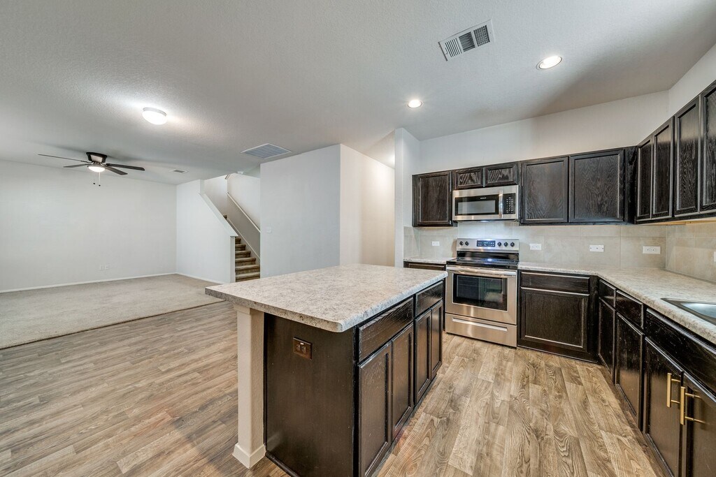 Spacious 3-bedroom, 2.5-bath home located in the desirable Crossing at Windcrest community. Ideally situated off O’Connor Road with quick access to I-35 and Loop 1604, military bases, major employers, shopping, and dining. The home offers excellent curb appeal and faces a buffer lot, providing added privacy with no neighbors directly in front. Enter through the covered front porch into an entry hallway featuring a versatile bonus room—perfect for a home office, media room, playroom, or guest space. The expansive living and dining area opens to an island kitchen equipped with stainless steel appliances and a generous pantry. A half bathroom and laundry room with washer and dryer are conveniently located on the first floor. Upstairs, the landing offers flexible space for play or entertaining. The large primary suite includes a tub/shower combination and an oversized walk-in closet. Secondary bedrooms are well-sized and feature ceiling fans, window coverings, and access to a full bathroom. Enjoy a nicely sized, two-level backyard with a privacy fence. Pets are considered on a case-by-case basis; Located in Judson ISD.