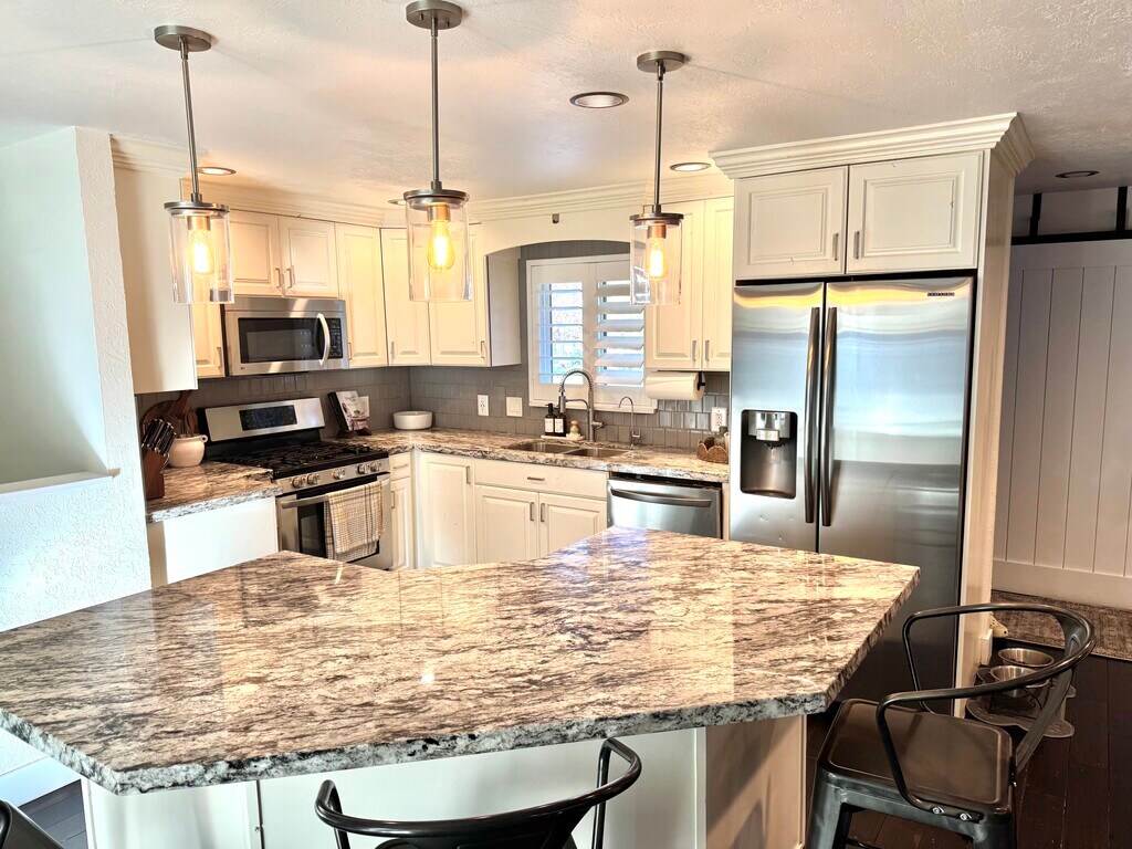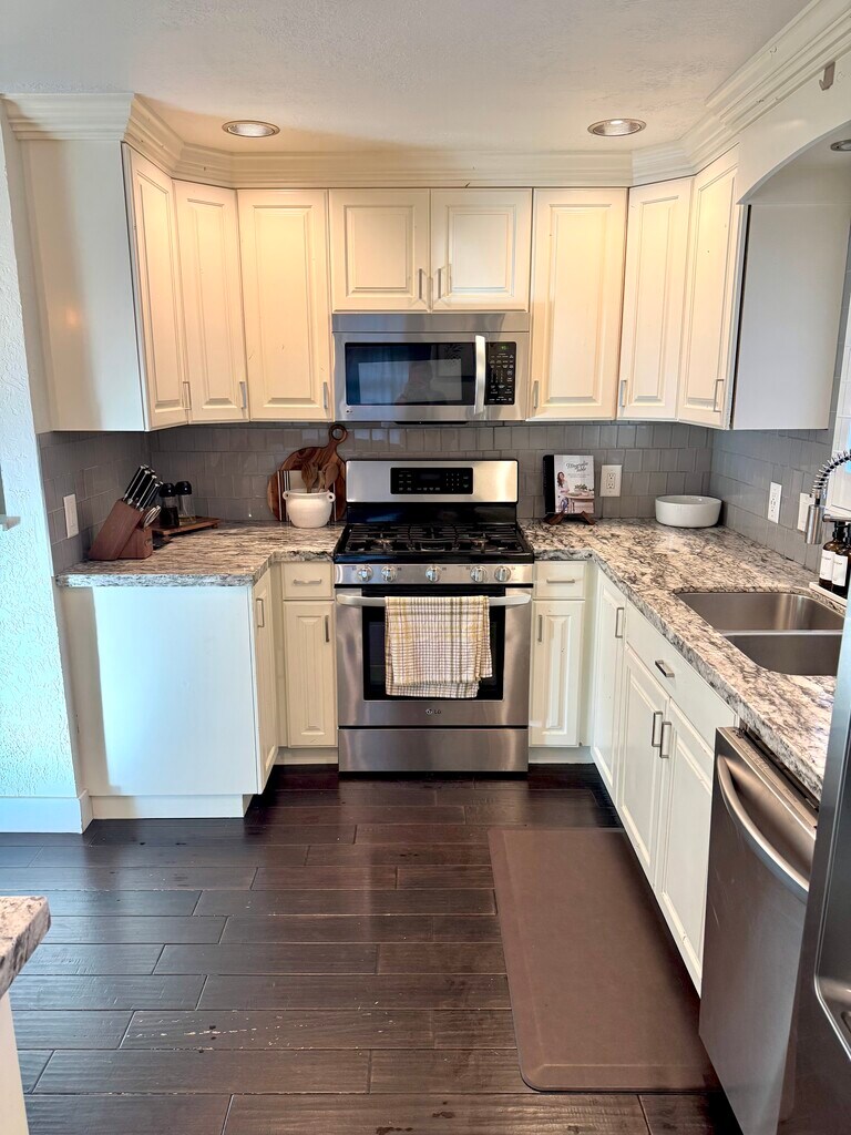 Located on a quiet street, this home features a modernized kitchen with granite countertops and a gas range. At 2,708 sq. ft., it includes a finished basement with a cozy fireplace and a large, fenced yard that is perfect for a family.