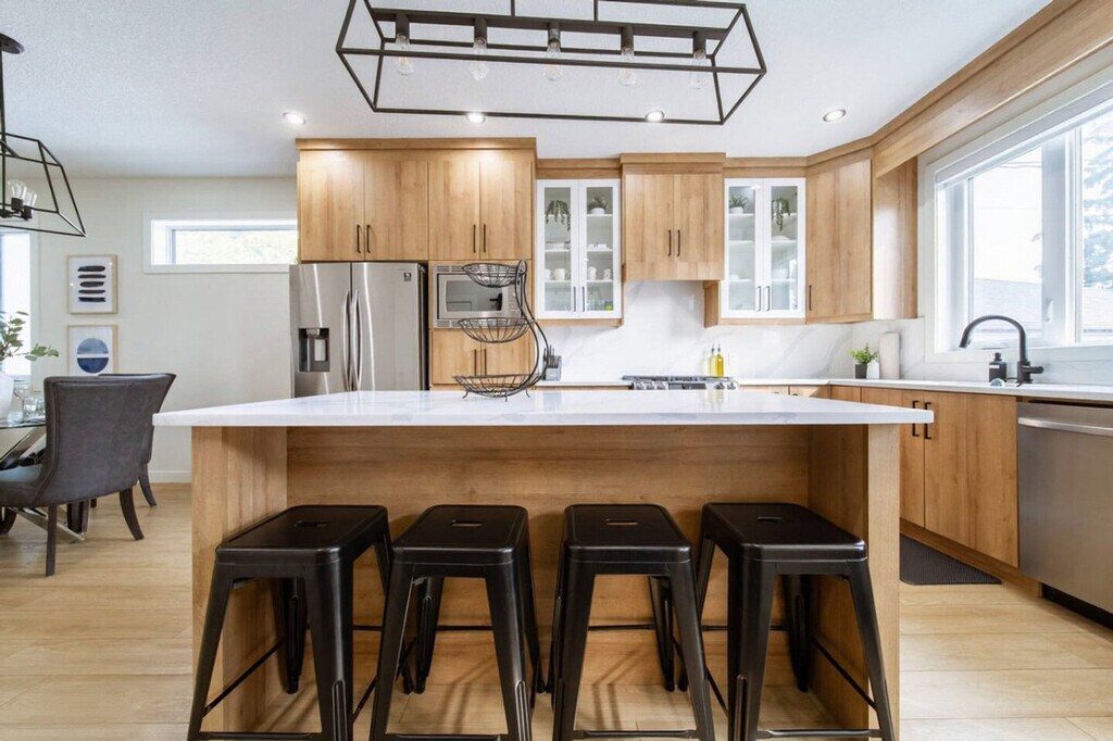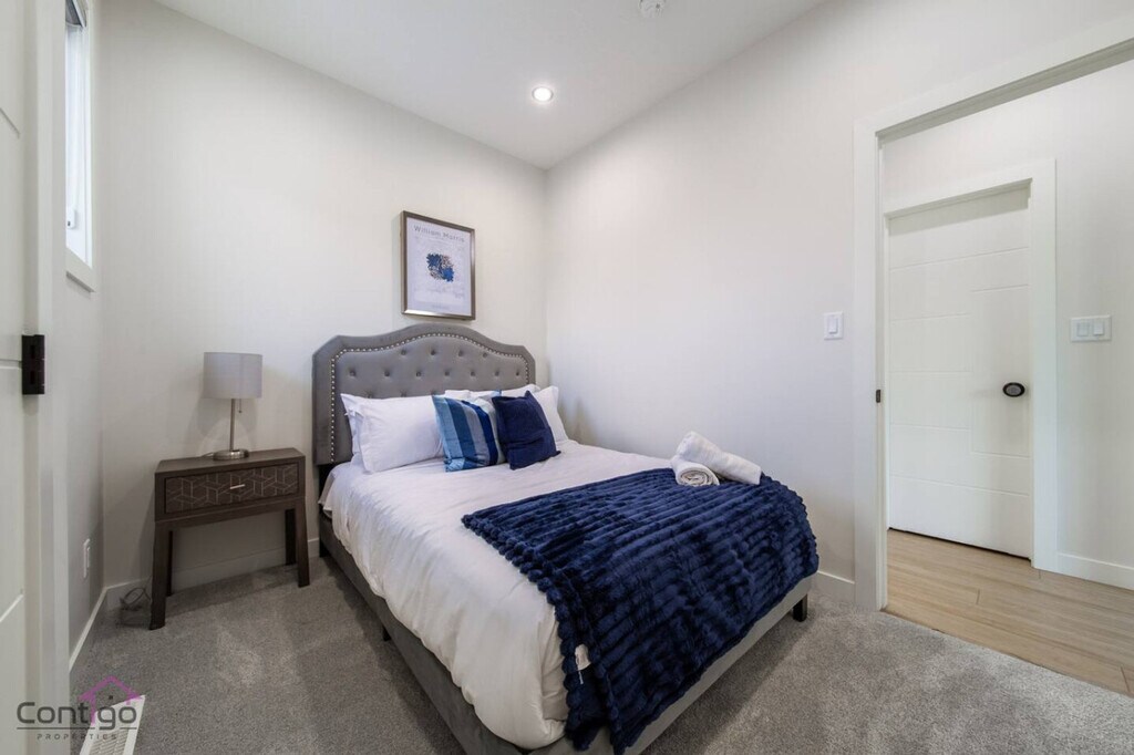 Feel at home in this modern West Jasper Place home, offering both relaxation and adventure with its stunning river valley views and proximity to shopping and dining. Located just 7 minutes from West Edmonton Mall and 10 minutes from Rogers Place, this home is perfect for short-term or long-term stays. Enjoy central air conditioning, a backyard and patio, and the convenience of self check-in. Inside, you'll find a fully equipped kitchen with stainless steel appliances, a cozy living room with cable TV, and an office space perfect for remote work with fast WiFi. The home comfortably sleeps six guests across three bedrooms, each with fresh linens. Enjoy the enclosed backyard for entertaining or relaxing, complete with a patio set and firepit (firewood not provided). While there is no garage access, ample free street parking is available around the home. Discover the charm of West Jasper Place in Edmonton, where urban convenience meets suburban comfort. Just a short drive from the iconic West Edmonton Mall, the area offers beautiful walking trails and parks for nature lovers. With quick access to downtown Edmonton, explore a vibrant arts scene, top-notch dining, and cultural attractions. Excellent public transit and major roads make getting around the city a breeze. Quiet hours are from 10 PM to 8 AM, and a $500 fee applies for unauthorized events or parties. Pets are not permitted, with a $250 fee for violations. Smoking and drug use are prohibited, with a $250 fee for evidence of smoking inside. The maximum occupancy is six guests, with a $40 fee per unregistered guest per night. A $50 fee applies for late check-outs beyond 30 minutes without prior notice, with additional charges for extended delays. The office room is equipped with fast WiFi, making it ideal for remote work. A laptop computer is not included. Registration Number: 525050800-001 [SI]