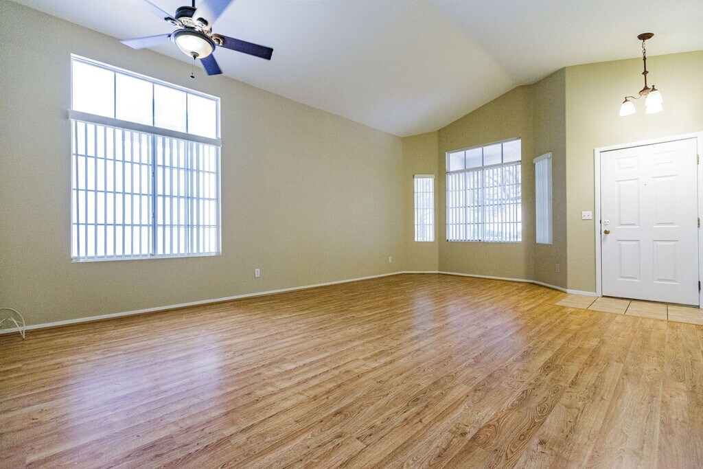 1 Story home with 3 Bedrooms, 2 Bathrooms, and 2 Car garage. Granite kitchen counter top. Tile, Laminate, and Carpet throughout. Ceiling fans throughout. Low maintenance desert landscaping. All Appliances included: Refrigerator, Stove, Microwave, Dishwasher, Washer, and Dryer. A must see. Won't last!