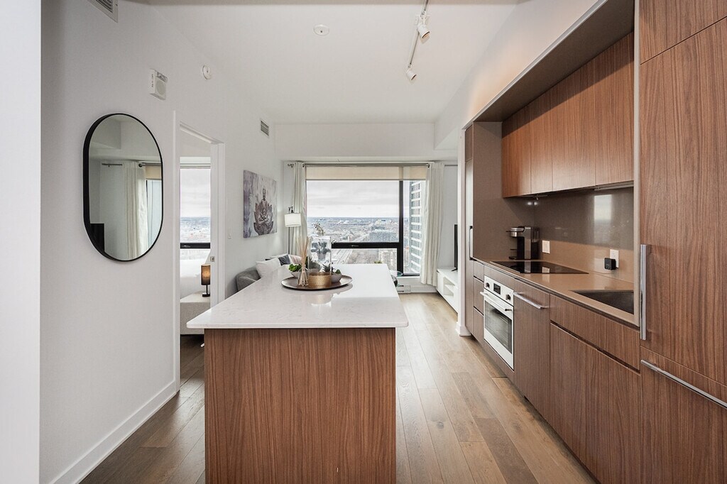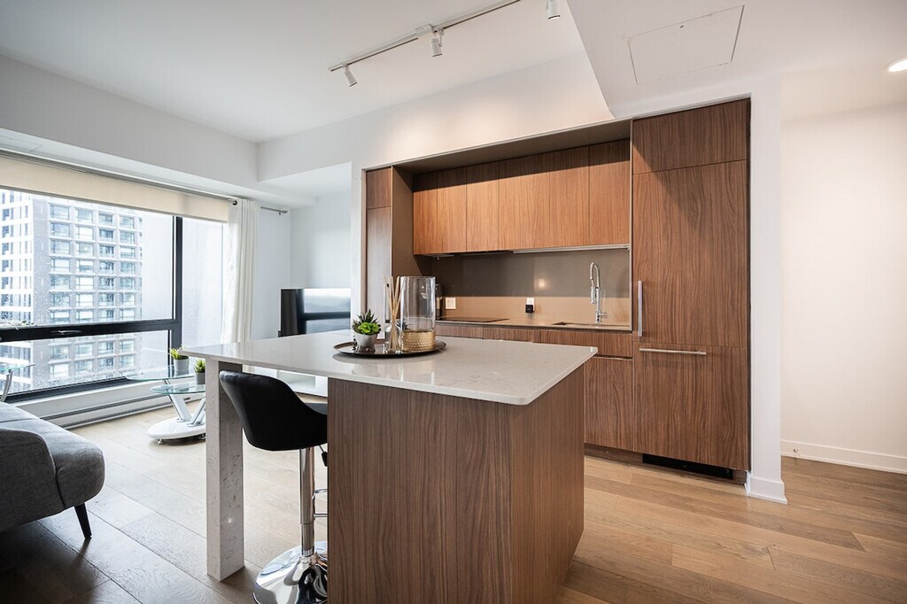 The advertised rate of C$3,050/month is the lowest available price, based on a 1 month(s) stay with a move-in date of November 21, 2026. Rates vary depending on the duration of stay, season, and other parameters. For exact pricing and additional pricing components, please visit our website and enter your desired move-in and move-out dates. The rate is applicable when billed upfront; it can be higher if billed in multiple payments. Feel at home in this luxurious high-rise in downtown Montreal, offering breathtaking city views from a spacious 1-bedroom apartment with one full bath and a private balcony. Expansive 10-foot ceilings invite natural light through large, sunny windows. This apartment boasts high-end finishes throughout and features a Smart TV and high-speed Wi-Fi. Indoor parking with in/out privileges is available for a separate fee depending on the length of your stay. A variety of cleaning services, including biweekly or monthly options, are available for an extra charge. Conveniently located steps from Lucien l’Allier metro station, train access, and the underground Montreal network, this apartment is in the heart of downtown Montreal. No parties or loud noises that can disturb the residents are allowed. Smoking (including cannabis/cigarettes or any kind) is prohibited inside the apartment, on the balcony, or in the building. Please care for your home away from home. [SI]