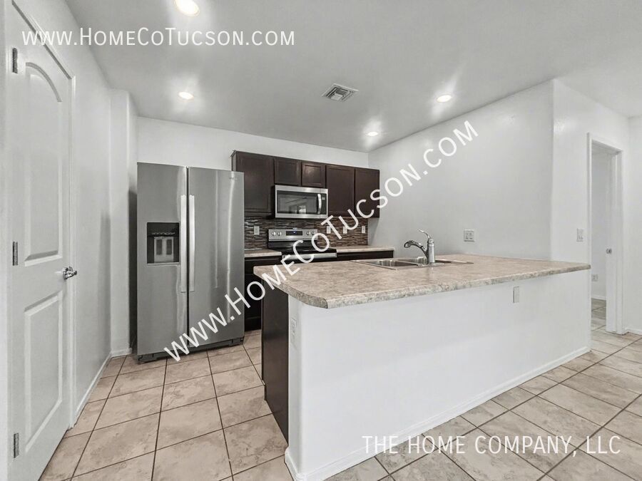 Welcome to this beautifully located three-bedroom, two-bath home in the heart of Sahuarita, a community known for its miles of walking and biking paths, neighborhood parks, recreation centers, and easy access to local dining, shopping, and community events. Set across the street from open desert space and backing to a lush greenbelt, this home offers a rare blend of scenic surroundings and everyday convenience. Inside, you’ll find tile flooring throughout and a smart split-bedroom floor plan. The modern kitchen features stainless steel appliances, a breakfast bar, and a pantry, opening comfortably to the main living area. Step outside to a walled rear yard with a covered patio that opens directly to the greenbelt—perfect for enjoying Sahuarita’s outdoor lifestyle. Additional highlights include a two-car garage and a dedicated laundry room with washer and dryer included. VIDEO TOUR: Explore this property with our comprehensive video tour to get a closer look at every detail before scheduling an in-person visit. **Walking Tour** **Virtual Tour** HOA: Entrada Del Rio - Rancho Sahuarita Managed by: Associa Arizona Phone: UTILITIES: Tenant is responsible for all utilities To review our rental qualifications, apply, view additional video tours, or schedule a showing, please visit: **Website: ** For questions during business hours, please contact us: Text: Email: QUALIFYING REQUIREMENTS: Email for a full disclosure of fees and to review a blank lease document. Experience the difference with The Home Company! Visit to schedule a showing, apply, view additional media for each available property, and review detailed qualifying requirements and information. Proudly setting the standard for property management in Arizona, The Home Company is dedicated to improving the rental experience for both tenants and landlords. As an Equal Opportunity Housing provider, we are committed to fairness and transparency in every interaction. All our agents are licensed Real Estate Professionals, delivering knowledgeable support and exceptional service. Please note, The Home Company, LLC exclusively represents the Landlord in all property-related matters. As the Landlord’s authorized Agent, our responsibility is to act in their best interests throughout the rental process. Call: (Leasing Department, Monday–Friday, 10 AM–4 PM) Bike & Walking Path Short Distance Community Park Community Pool Covered Back Patio Dual Vanity Great Room Large Primary Bedroom Low Care Desert Landscape Modern Light Fixtures One Story Primary Bedroom With Ensuite Bathroom Sahuarita Water Co Southwest Gas 1 Split Bedroom Floorplan Tenant To Contact The Following Utilities To Establish Service: Three Bedrooms Trash Service Of Tenants Choice Tucson Electric Power Two Bathrooms Two Car Garage Washer And Dryer Included