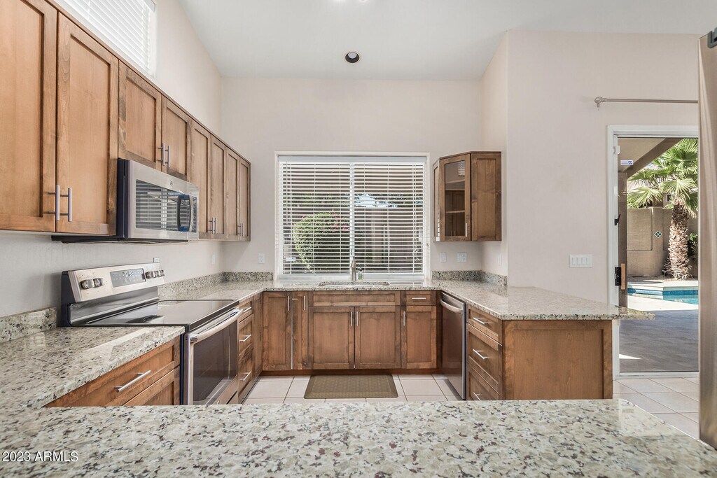 Stunning 4BR home with remodeled kitchen & baths,3-car garage,and single-level floor plan on N/S lot filled with natural light,charm & warmth. Includes all kitchen appliances (yes,fridge too!) plus washer/dryer. Stay comfy with a newer A/C unit. Enjoy a private remodeled pool with resort vibes,travertine deck & patio,mountain views,and a separate grassy play area. Located in A-rated Copper Ridge & Chaparral schools. Close to hiking,dining & freewaysjust 1 mile to AJ's & the Village,and a bit over a mile to Gateway Trailhead.