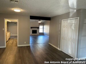 1647SF 4/2/2. Make ready is being completed on the home which includes paint throughout interior of home, new dishwasher, new garage door openers, flooring was upgraded to laminate two years ago and upgrades were done to the bathrooms along with enlarging the living area. There is a dining room and breakfast room looking out onto the cover patio. Kitchen is equipped with all appliances. This home has a vaulted ceiling with FP in the living room. Master bedroom features an ensuite and walk-in closets and 3 more rooms round out this home. Great location minutes from I-35, major box stores, and restaurants.