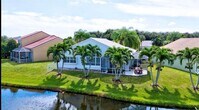 Courtesy of Florida's Best Realty Services Posted by Andrew Coleman with EXP Realty . This beautifully maintained 3 beds, 2 bath single-family home sits on a desirable lot with peaceful lake views in the Boca Landings community. Inside, soaring ceilings complement an open, functional kitchen and a split-bedroom floor plan that offers comfort and privacy. The primary suite is a relaxing retreat featuring a walk-in closet and a newly renovated, spa-inspired bathroom. Two additional bedrooms share a tastefully updated guest bath. Unwind while taking in stunning sunsets and tranquil water views from the screened, wraparound patio. Boca Landings offers resort-style amenities including a large sized pool, tennis and pickleball courts. Situated within an A-rated school district, this home delivers the perfect blend of lifestyle, comfort, and location.