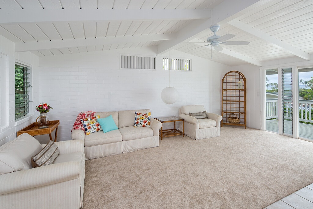 This clean, spacious and bright one bedroom is available for long term lease in beautiful Lanikai. Relax on the large deck with your morning coffee, paint or read in the studio/sun room and retire in a very spacious and comfortable bedroom. The living room, dining room and kitchen offer tons of space for all your needs. Comes partially furnished or non furnished. Appliances include a gas stove, oven, new refrigerator, built in microwave and toaster oven. Lease includes water, sewer, yard service, pest control and electricity allowance ($200). Internet/Cable are on the tenant. Property is available now and comes with two parking stalls. Sorry, no smoking and no pets. Please note, another property is onsite however no shared space. This is a separate property. Contact Corinne Souza at for more information or to schedule a viewing.