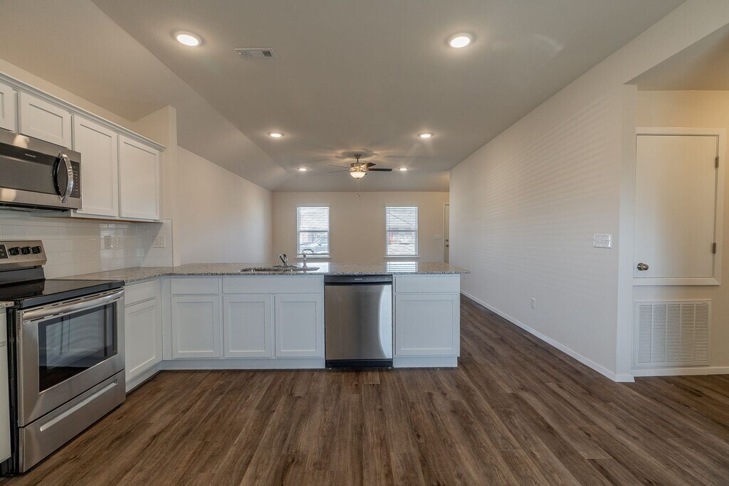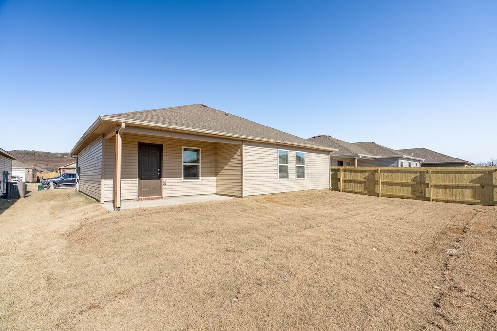 3-bedroom 2 bath Home in Fayetteville!!! Luxury vinyl plank flooring throughout living and common areas make clean up a breeze, even with pets! The spacious living room is open to the kitchen, which has granite counters and bar seating, pantry, and stainless appliances (high end fridge included!). There's also a nice sized dining area adjacent to the kitchen. This master bedroom is HUGE and it's attached bath boasts a walk in shower and ample storage. Two guest bedrooms share a hall bath. The backyard is easy to enjoy from the large COVERED back patio! Make this one yours before it's gone!