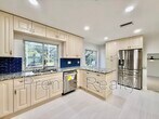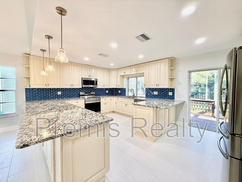 One of a kind, immaculate, 4 bedroom, 3 bathroom, remodeled home. This two story home has it all. As you walk in you are greeted by vaulted ceilings and led to the living room which leads up into the remodeled kitchen. There is a lovely blue tile back splash, stainless steel appliances, cream colored shaker cabinets, and large sliding glass doors that lead to the backyard and pool. There is a three car garage, huge laundry room with new washer/dryer, and plenty of private outdoor space. If you enjoy sitting by the pool or jacuzzi, this is the home for you. The entire back side of the home is enclosed, surrounding the sparkling pool, jacuzzi, and oversized deck. There is a full sized bathroom access from the pool area for family and guests to use when outside. Upstairs includes 3 additional rooms, and another guest bathroom with dual sinks. The primary bedroom boasts a huge walk in closet and even bigger bathroom that features an enormous jacuzzi style tub with shower. The walls are covered real rock giving the room a rustic touch. You're not going to want to miss out on this one! There is plenty of space for a family to grow, including space for a home office. The possibilities are endless here. Tenant is responsible for all utilities including lawn maintenance. Renter's insurance required. First, last, and a security deposit paid before moving in. Zoned for Garrison-Jones Elementary, Dunedin Middle, and Dunedin High schools. Close to Downtown Dunedin, beaches, local shopping, Dunedin Commerce, hospitals, restaurants, entertainment, and MORE!