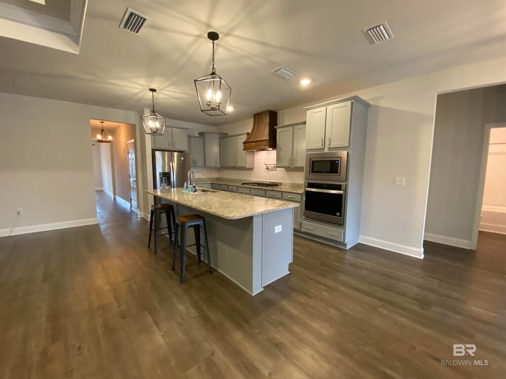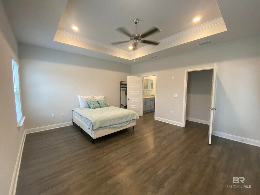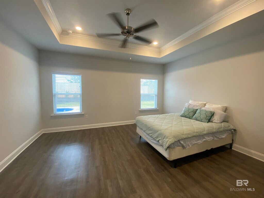 Available mid-May! This beautiful 4-bedroom,3-bath home with a pool features an open floor plan and custom touches throughout. The fifth bedroom has been converted into a spacious his-and-hers closet connected to the master bedroom. The primary bathroom offers double vanities,a separate shower,and a relaxing soaking tub. Step outside to a fully fenced yard with an extended driveway for boat parking. Enjoy your own private pool and stay cool during those hot Southern Alabama summers.