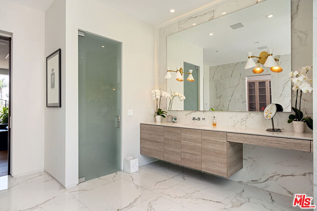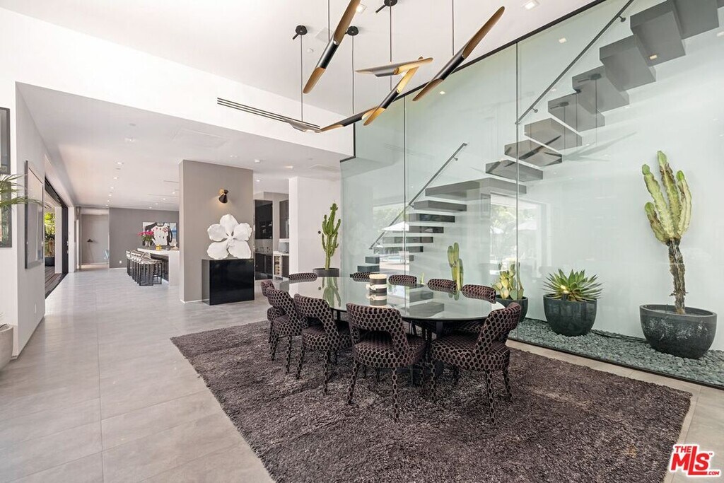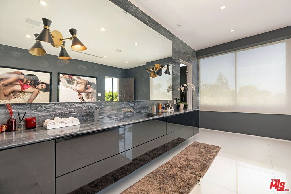 Walk through a perfectly landscaped front yard to enter an entertainer's paradise! The grand spacious floor plan offers open living & dining areas w/ high ceilings, & marble floors throughout. The staircase with glass paneling takes you up to a private master suite w/ a lounge area that features a dual sided contemporary fireplace, textured tile walls, bright hardwood floors & glass doors that guide you to a private 2,000 sqft terrace that overlooks the pool area along w/ spectacular city views. The master suite features dual bathrooms, one w/ a romantic bath tub, sliding glass doors to a large balcony, both w/ glass showers, marble walls & floors that leads to an ultra modern, avant-garde walk-in closets. The bright & light kitchen has a 15ft island w/ bar seating , w/ top of the line appliances, dual sinks, wine cooler, and floor to ceiling windows that lead to the pool area. This architectural masterpiece is perfect for enjoying the Beverly Hills lifestyle! MLS# 26638297