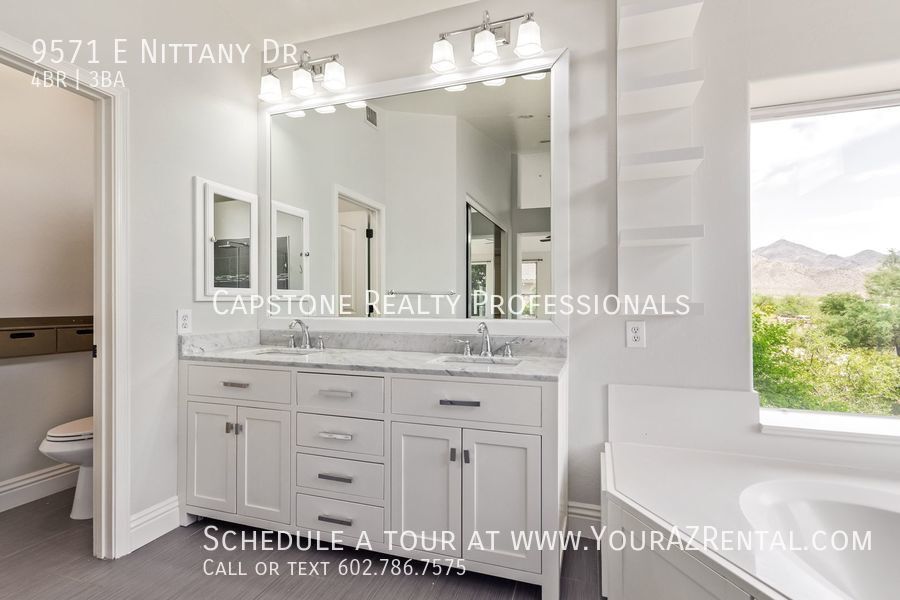 This stunning Ironwood Village gem boasts a prime location and luxurious upgrades. Step inside to a two-story haven featuring custom renovations, including a gourmet kitchen fit for a chef. Imagine whipping up culinary masterpieces with a 6-burner gas range, gleaming stainless steel appliances, and sleek quartz countertops. Warm wood flooring and modern lighting create an inviting atmosphere throughout. Unwind in the private master bedroom, where breathtaking mountain views greet you from your own terrace. Camelback Mountain adds another layer of scenic splendor, visible from your double walk-in closets. Vaulted ceilings enhance the sense of spaciousness. Head outside to your expansive backyard oasis, complete with a sparkling pool for Arizona's glorious weather. Lush landscaping ensures complete privacy while you relax or entertain. This home sits within highly-rated school districts and offers easy access to major highways, making commutes a breeze. Nearby shopping caters to your everyday needs. Plus, Ironwood Park and a tennis court are just a short stroll away. Don't miss your chance to experience modern living in a welcoming space. Schedule a showing today and make this your own! Quick access to parks, the 101 freeway, Aj's Fine Foods, Silverleaf Country Club, Trailheads, the Ice Den and much more! Landscaping and pool services included! -- One Time Lease Administration Fee: $150.00 Monthly Tenant Benefit Package: $49.99 Security Deposit: Equal to one months rent Refundable Cleaning Deposit: $400.00 Refundable Pet Deposit: $200.00 per pet 3 Car Garage Built In Shelving Dryer Fire Sprinklers Irrigation System Pool Non Heated Separate Shower And Tub Smoke Detectors Walk In Shower Washer Wood Flooring