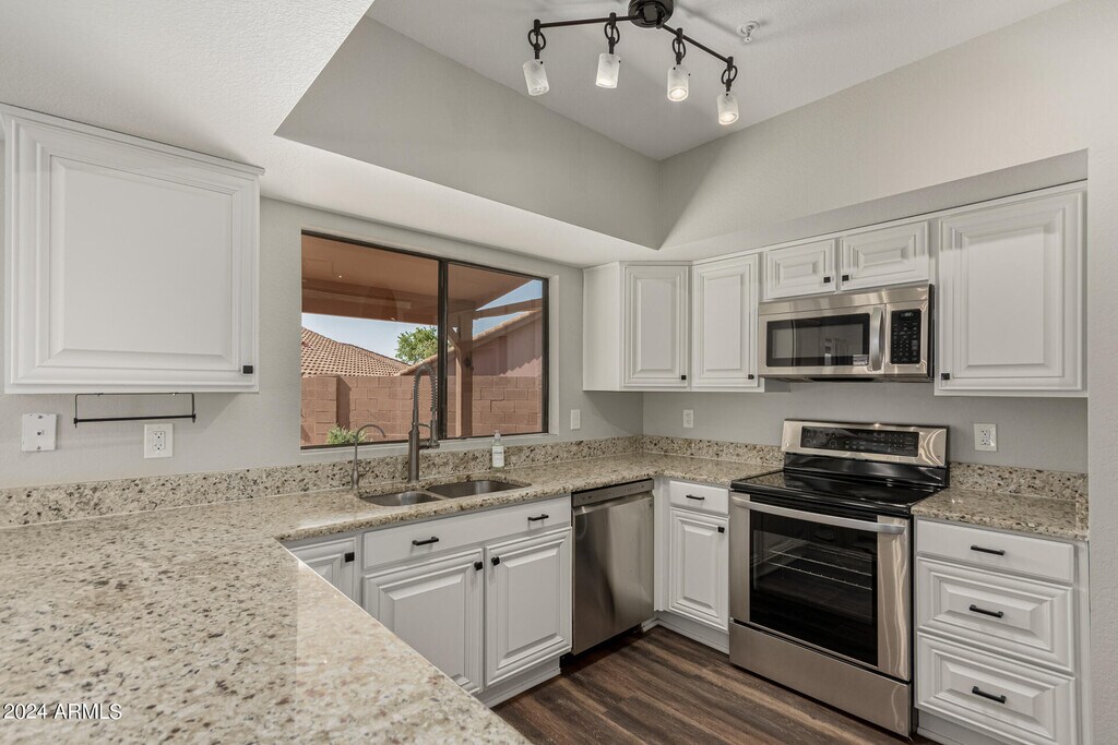 This stunningly updated 4-bedroom,3-bath home offers an elegant blend of modern upgrades and timeless design. The spacious,open-concept layout features soaring ceilings,designer finishes,and abundant natural light. The gourmet kitchen boasts quartz countertops,custom cabinetry,stainless steel appliances,and a large island perfect for entertaining. The primary suite is a true retreat with a spa-like bathroom featuring a soaking tub,walk-in shower,and dual vanities. Enjoy seamless indoor-outdoor living with sliding doors that open to a private backyard oasis complete with a sparkling pool,covered patio,and lush landscaping. Additional highlights include a 3-car garage,newer flooring,updated bathrooms,and energy-efficient windows. Move-in ready luxury living at its finest!