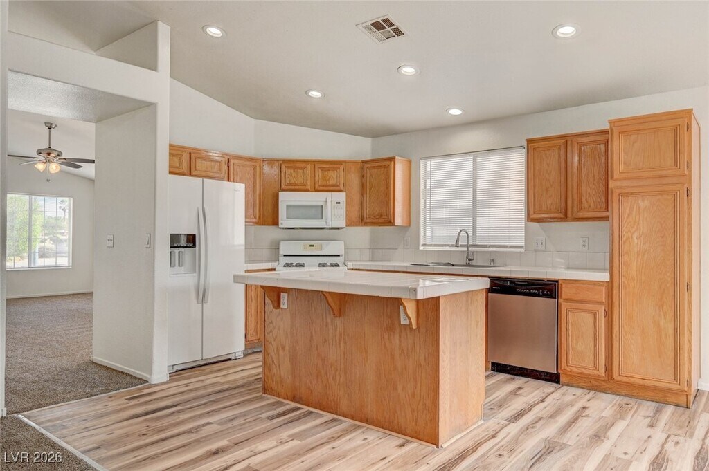 Welcome home to this beautifully remodeled single-story residence in the highly sought-after Silverado Ranch neighborhood. This charming home features an inviting open floor plan with three spacious bedrooms and two full bathrooms. Abundant natural light fills the living spaces, creating a warm and welcoming atmosphere. The kitchen offers ample dining space, perfect for gatherings, and ceiling fans are installed throughout for added comfort. Conveniently located near schools and shopping centers, this home provides both comfort and accessibility. Don't miss the opportunity to make it yours!