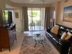 AVAILABLE DECEMBER,and JANUARY Welcome to a beautiful carriage home located in prestigious high end Colonial Golf & Country Club. The open floor plan "Heron Model Carriage Home" offers beautiful nightly sunsets,streaming sunlight and the panoramic,tranquil lake views from the spacious lanai. This meticulously maintained just painted home has 2 Bedrooms and the Den with two fully renovated bathrooms. New furnishings in 2019,With a fully updated Master Bedroom,Tempur-Pedic King Size Bed and the Guest room has a Queen Size bed.. The unit has granite kitchen counters,upgraded cabinets,stainless steel appliances,ceramic tile throughout the unit. 18-hole championship golf course designed by Gordon Lewis is available at "Pay As You Play" Social membership includes 8 Har-Tru tennis courts,pickle ball courts,8 pools,tropical preserve with walking trails,fitness center,aerobics room,private massage rooms,library and business center and much more. Amenities Clubhouse,golf,tennis,bocce,horseshoes,the fitness center,beautiful sunsets,walking/biking trails and swimming pool.