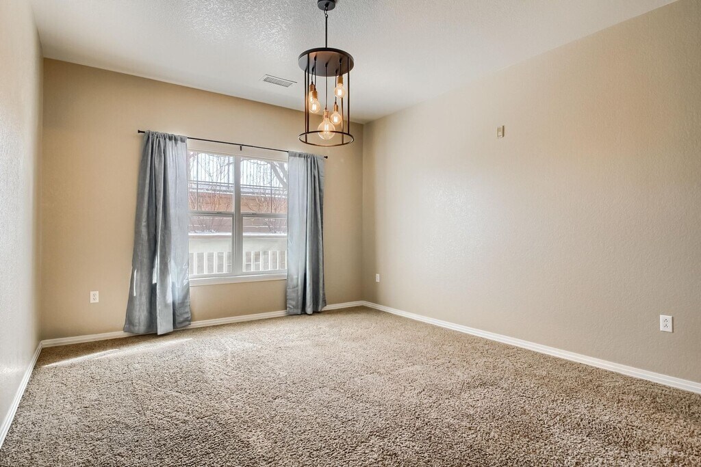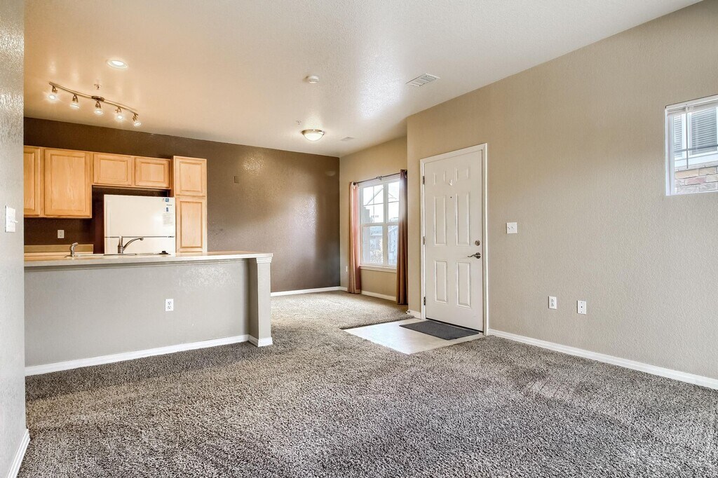This 1 bed 1 bath condo is located in Parker. Spacious kitchen with tiled flooring and plenty of cabinet space upon entry to the unit. Dining space just off the kitchen. spacious carpeted living space. Bedroom has large walk-in closet with built-in shelves. Full bathroom with two sinks. In-unit laundry and extra storage space just off the bathroom. Private covered patio space just out back. Includes access to a community pool and one reserved parking space! Laundry is in-unit. One reserved off-street parking space. One dog allowed, no cats. Deposit is one month's rent. Application fee is $52 per adult. Link to our 3D Tour -