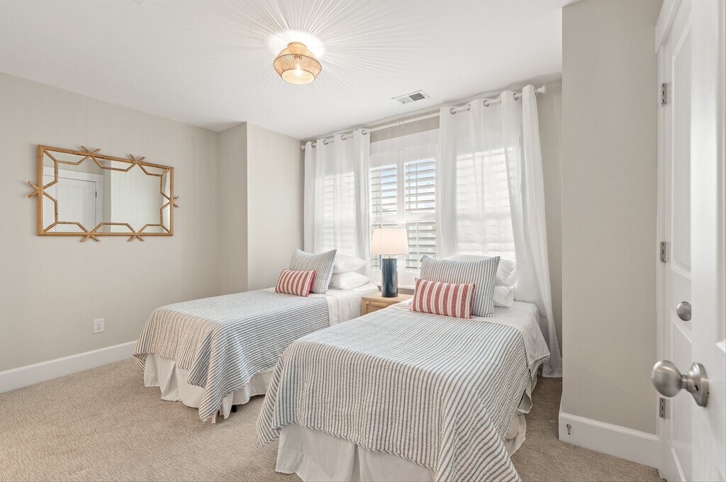 958 Key Colony Court combines beauty and comfort with its modern coastal aesthetic, high end furnishings, and ultra-premium memory foam mattresses. This charming and light-filled 3 bedroom/2.5 bath home can comfortably accommodate 6 guests (1 king, 1 queen, 2 twins). This fully furnished turn-key home includes a fully stocked kitchen, linens and wall-mounted smart TVs. Enjoy the Carolina weather on your own private back patio and outdoor shower. Plenty of room for your car, low speed vehicle, bikes and beach equipment in the attached garage and private driveway. Home Tour: An unbeatable location, this home is in close proximity to the Intercoastal Waterway, beaches, parks, trails, restaurants and shopping. Nestled at the base of the Ben Sawyer Bridge, you will be an easy bike ride or quick 2-minute drive to Sullivan’s Island. Convenient access via bike or low speed vehicle to all the amenities offered by Old Mt. Pleasant, Pitt Street Bridge and Shem Creek Waterfront. Downtown Charleston is only 6 miles away, connected by the picturesque Ravenel Bridge. Tenants responsible for all utilities. No smoking allowed. Non-shedding dogs under 25lbs will be considered with an additional deposit. Minimum 3-month lease.