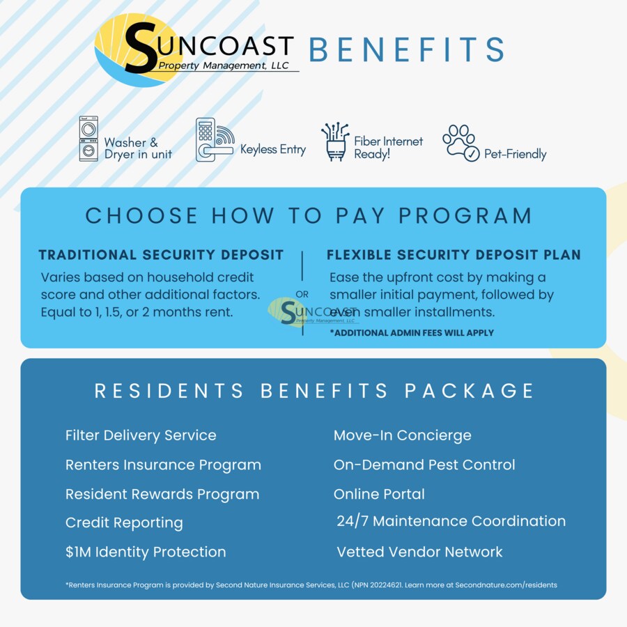LIMITED TIME OFFER: 1 MONTH FREE OF RENT UNTIL FRIDAY! Welcome to Jacksonville's newest and most exciting residential community! Our Quad units, situated at the intersection of Hood and Sunbeam Road, represent the pinnacle of contemporary living. These modern residences offer an exquisite blend of style and comfort, each spanning a generous 1,040 square feet of thoughtfully designed space. As you step through the door, you'll be greeted by an expansive open-concept layout that seamlessly integrates the living, dining, and kitchen areas. The interiors are adorned with luxurious granite countertops and sleek white cabinetry, providing a sophisticated yet warm ambiance. This 2-bedroom, 2-bathroom configuration ensures plenty of room for both relaxation and entertainment. Our community is proud to be pet-friendly, extending a warm welcome to your furry companions. Don't miss out on the chance to be a part of this vibrant community. Submit your application today to secure your spot. With limited availability, these contemporary residences are sure to be in high demand. Claim your beautifully crafted living space before it's gone! Suncoast's Choose How to Pay Program = More Flexibility. High upfront costs shouldnt hold you back from finding the right home. Thats why we offer two simple options: 1. Pay the traditional full security deposit at move-in, or 2. Choose our Flexible Security Deposit Plan, which lets you spread out your payments while still keeping the same coverage. This program helps ease move-in costs without sacrificing peace of mind. Photos are for illustration purposes only and some details may differ! All SunCoast Property Management residents are enrolled in the Resident Benefits Package (RBP) for $75.00/month which includes liability insurance, credit building to help boost the residents credit score with timely rent payments, up to $1M Identity Theft Protection, HVAC air filter delivery (for applicable properties), move-in concierge service making utility connection and home service setup a breeze during your move-in, our best-in-class resident rewards program, on-demand pest control, and much more! The RBP is an additional cost and is not included in the advertised monthly rental rate. More details upon application. BEWARE of potential fraud. If you suspect one of our properties being listed fraudulently, please email: Suncoast Property Management does NOT ask any of our potential residents to wire funds. Our main office is located in Jacksonville; Florida and you can visit our website to verify any rental listing. Lease Administrative Fee. Upon execution of this Lease, Tenant will pay Landlord a nonrefundable Lease Administrative Fee of $200.00. An additional $25 trash fee will be due every month and is in addition to the advertised rental rate. Pay Online Pets Allowed Washer/Dryer Connections Washer/Dryer In Unit ?? Now Leasing: Brand-New 2BR/2BA Apartments on Hood & Sunbeam + Select Units Free to Apply! Limited Availability – Tour & Apply Today! Welcome to Jacksonville’s newest modern apartment community, located at the highly accessible corner of Hood Road and Sunbeam Road. These brand-new 2-bedroom, 2-bathroom quad units offer the perfect combination of style, comfort, and convenience — all in a prime Southside Jacksonville location near shopping, dining, and major employers. ? Apartment Features: ?? Washer & Dryer Included in Every Unit ??? Granite Countertops & Sleek White Cabinetry ?? Luxury Vinyl Plank Flooring Throughout ?? Open-Concept Floor Plan – 1,040 Sq. Ft. of Living Space ?? Bright Interiors & Modern Finishes ??? Spacious 2-Bedroom, 2-Bathroom Layout ?? Prime Jacksonville Location – Near: I-295, Philips Hwy & Baymeadows Rd Shopping centers, grocery stores & restaurants Top schools, healthcare facilities & fitness centers Easy commutes to Downtown, St. Johns Town Center, and major employers ?? Pet-Friendly Living Your pets are welcome! We offer a pet-friendly community with no pet rent and a non-refundable pet fee. Enjoy a home that’s perfect for your entire household – furry friends included! ?? Contact Us Today to Schedule Your Tour! These brand-new homes are in high demand and won’t last long. Suncoast's Choose How to Pay Program = More Flexibility. High upfront costs shouldnt hold you back from finding the right home. Thats why we offer two simple options: 1. Pay the traditional full security deposit at move-in, or 2. Choose our Flexible Security Deposit Plan, which lets you spread out your payments while still keeping the same coverage. This program helps ease move-in costs without sacrificing peace of mind. Photos are for illustration purposes only and some details may differ! All SunCoast Property Management residents are enrolled in the Resident Benefits Package (RBP) for $75.00/month which includes liability insurance, credit building to help boost the residents credit score with timely rent payments, up to $1M Identity Theft Protection, HVAC air filter delivery (for applicable properties), move-in concierge service making utility connection and home service setup a breeze during your move-in, on-demand pest control, and much more! The RBP is an additional cost and is not included in the advertised monthly rental rate. More details upon application. BEWARE of potential fraud. If you suspect one of our properties being listed fraudulently, please email: Suncoast Property Management does NOT ask any of our potential residents to wire funds. Our main office is located in Jacksonville; Florida and you can visit our website to verify any rental listing. Lease Administrative Fee. Upon execution of this Lease, Tenant will pay Landlord a nonrefundable Lease Administrative Fee of $200.00.