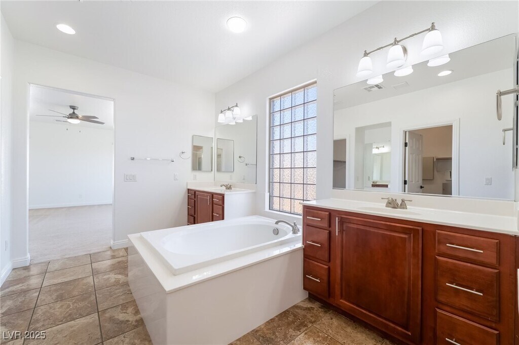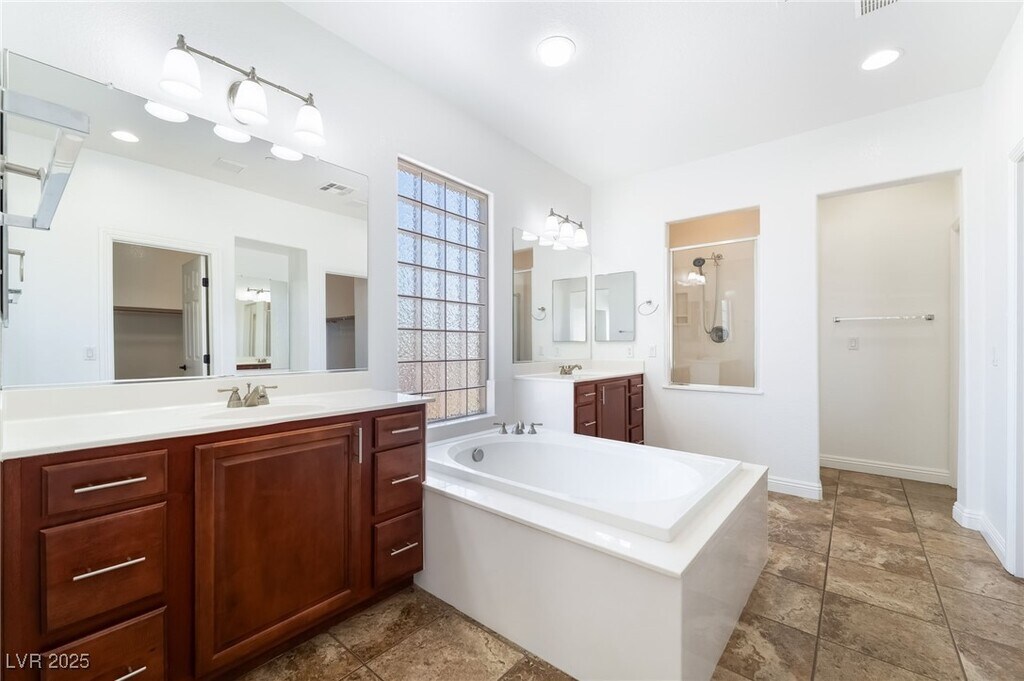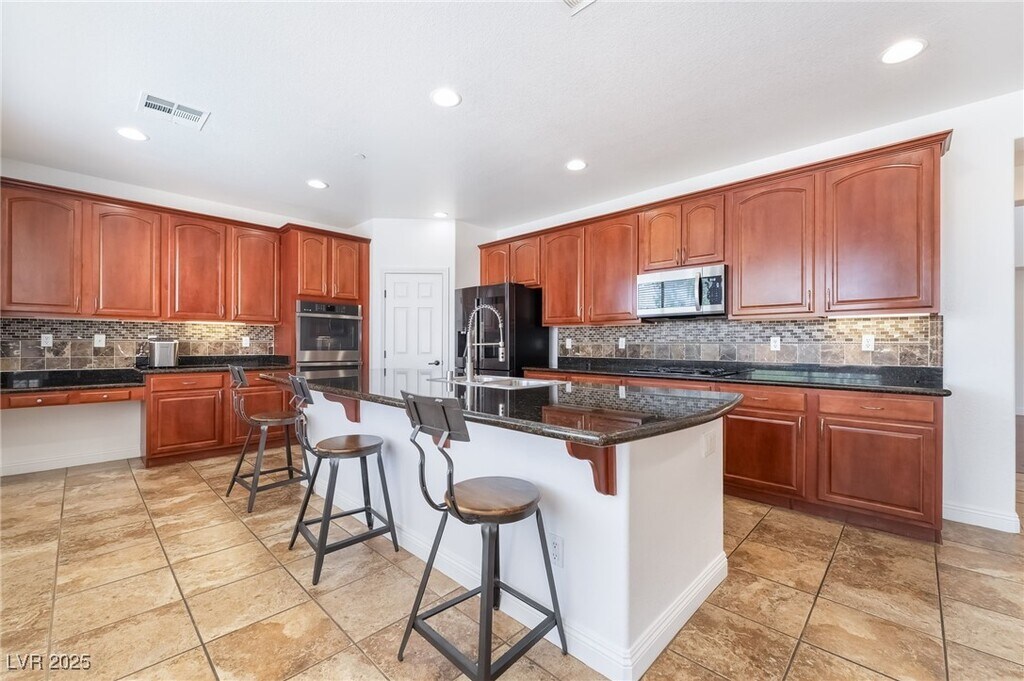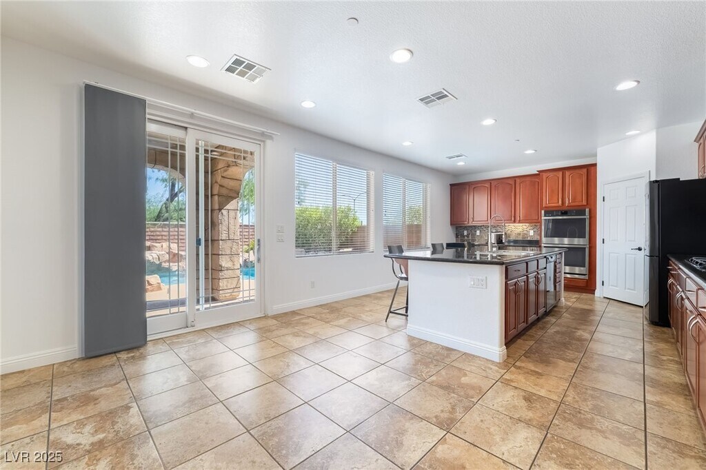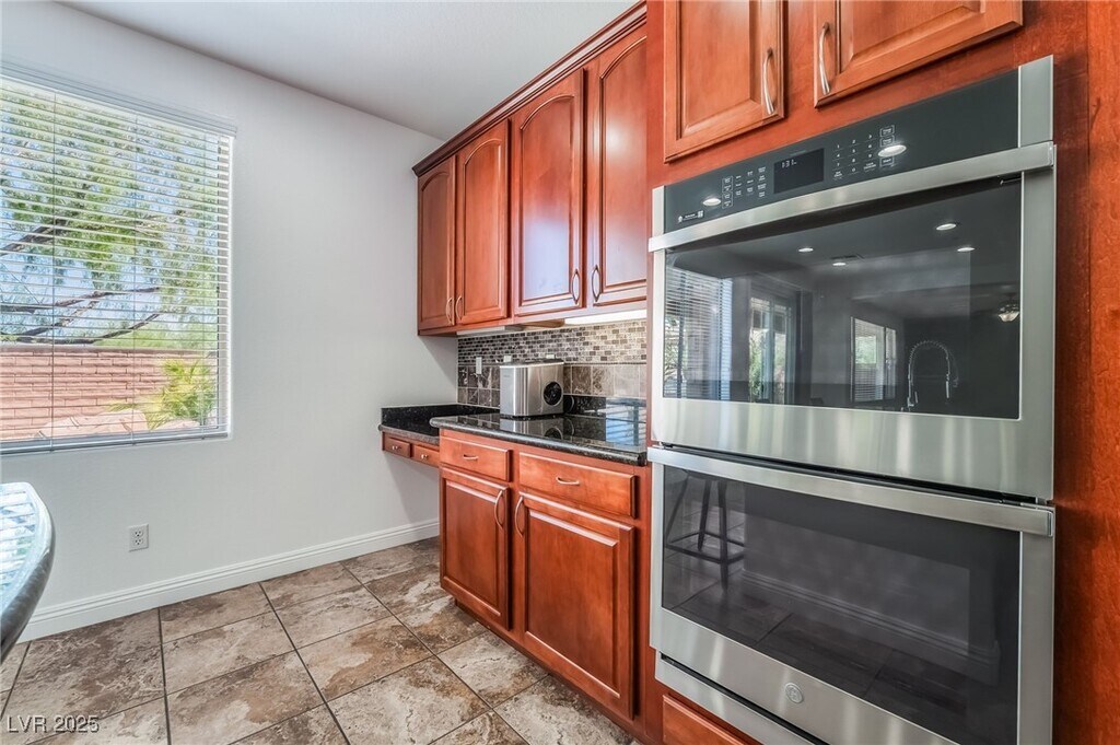 Stunning home with a resort-style pool and spa, located in the exclusive gated community of Marble Canyon in Mountains Edge. Just across the street behind this magnificent home sits Exploration Peak Park. Breathtaking views from the primary bedroom balcony. Mountains Edge Regional Park is minutes away. This impressive residence features a 3-car garage, five spacious bedrooms, & four full bathrooms, with one bedroom & bath conveniently located on the main floor. Gourmet kitchen, complete with a large island, granite countertops, Butler’s pantry, & upgraded cabinets, is perfect for culinary enthusiasts. Enjoy high ceilings that create an airy feel throughout the home, along with a generous loft, family room, dining area, & versatile den/office. Outside, entertain friends with a built-in BBQ or cozy up around the fire pit. The laundry room includes a sink and ample cabinetry. Ideally situated near shopping, dining, schools, and easy access to the airport and the Las Vegas Strip.