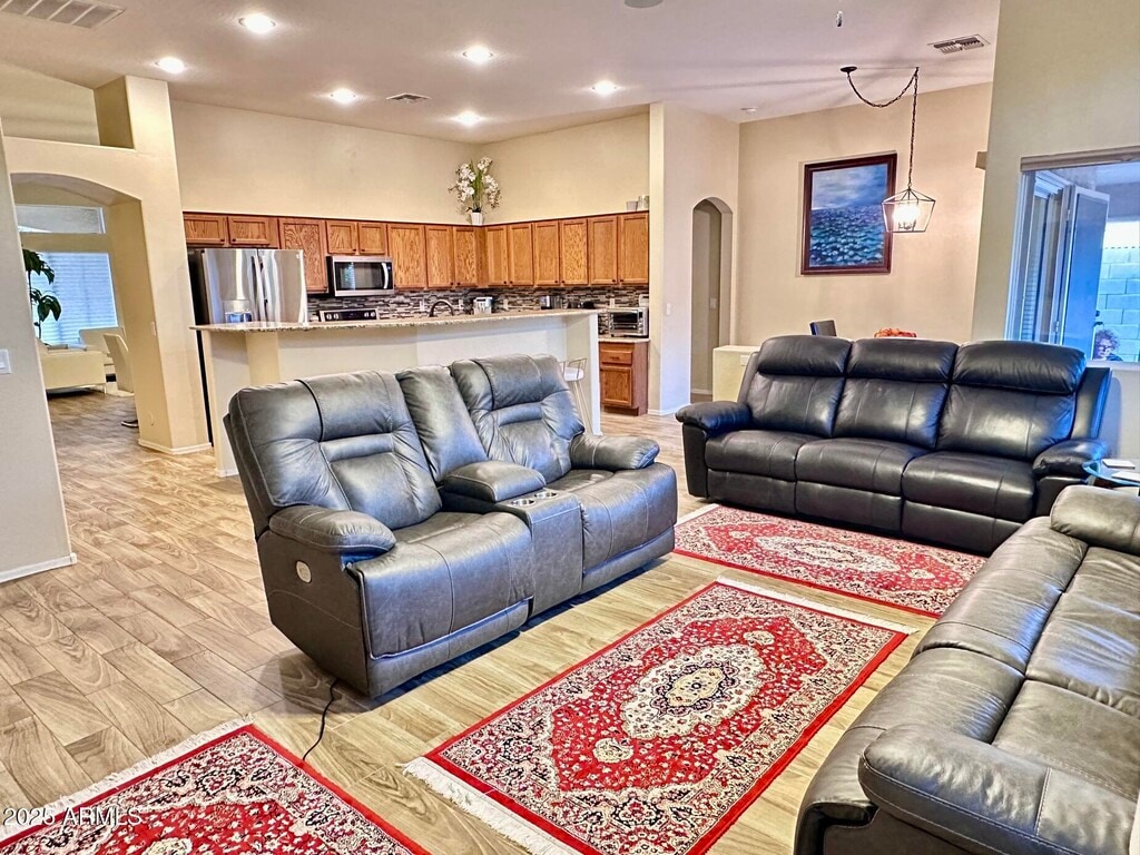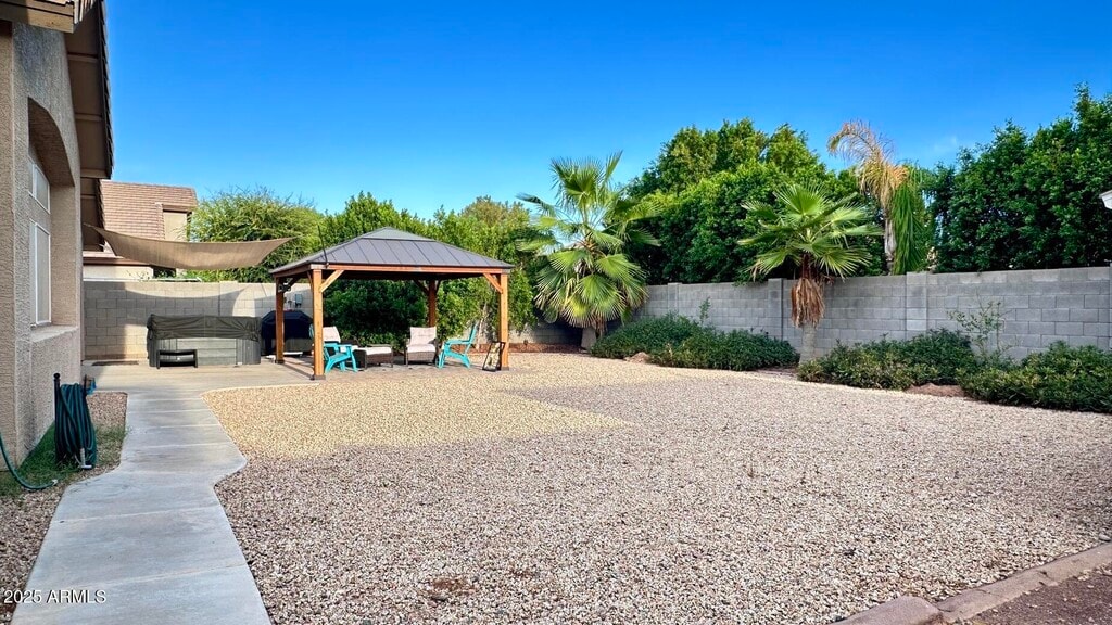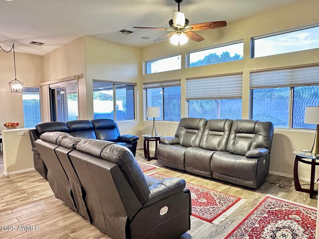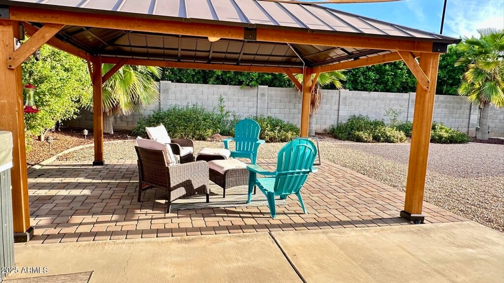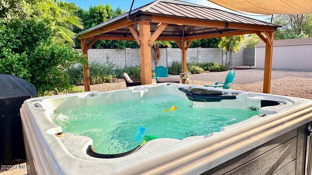 Beautifully upgraded home in a prime West Valley location,just off the 101 and minutes from State Farm Stadium,Westgate,and Park West. Spacious floor plan with separate living,family,and dining areas. The kitchen features granite countertops,stainless appliances,and a breakfast bar. The primary suite offers a remodeled bath with quartz and designer finishes. Enjoy the private backyard with new landscaping,Mexican Fan Palms,and a gazebo equipped with a jacuzzi,lighting,a fan,and a TV hookup.