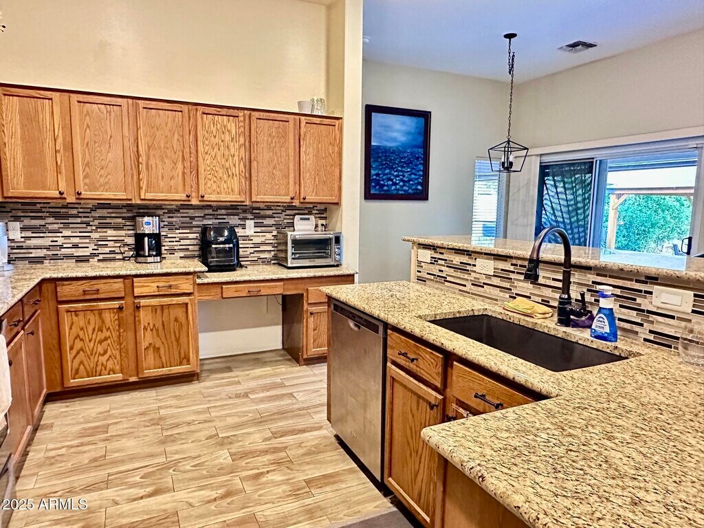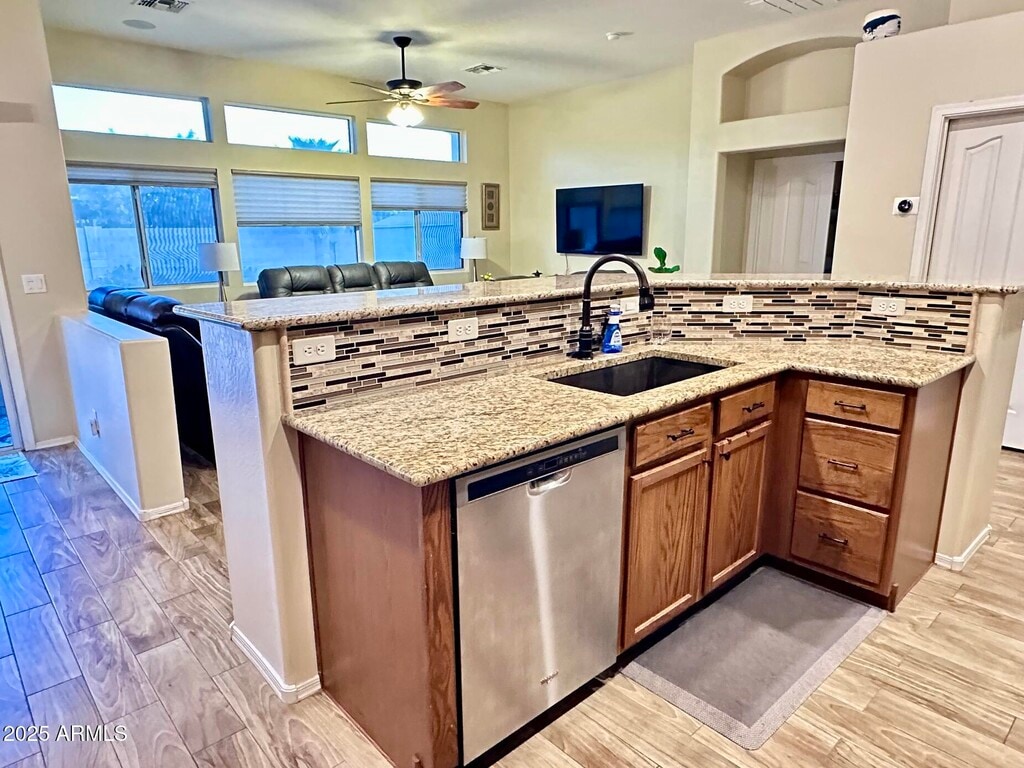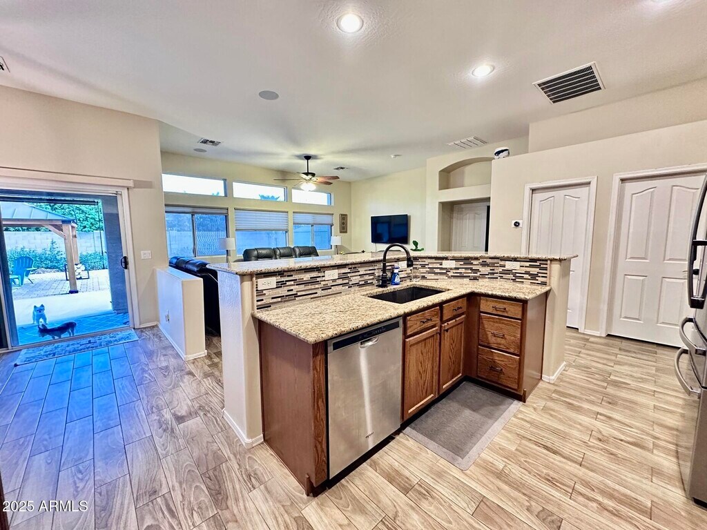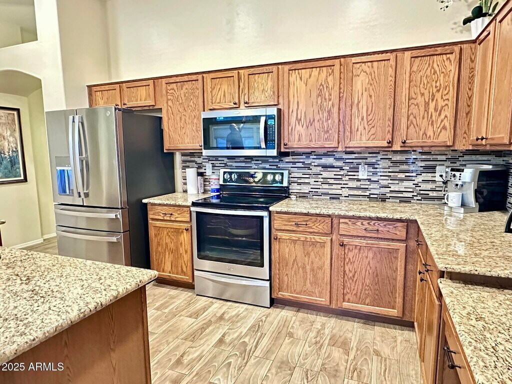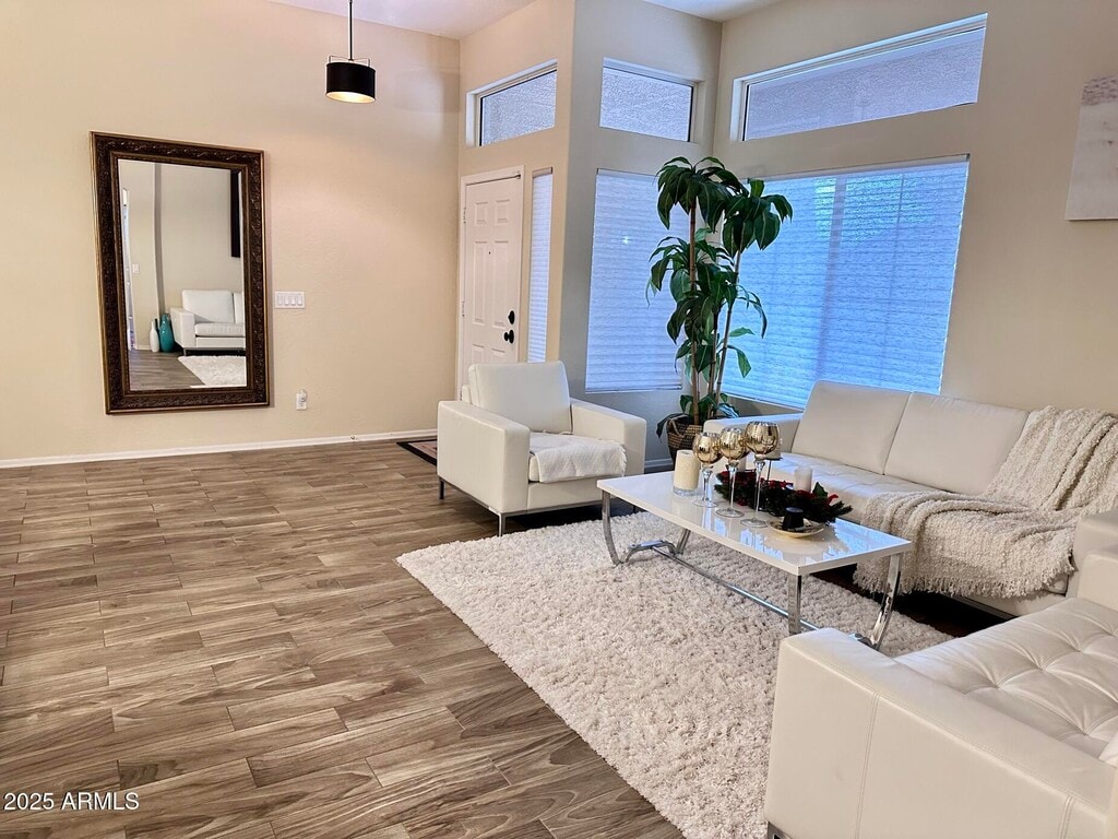 Beautifully upgraded home in a prime West Valley location,just off the 101 and minutes from State Farm Stadium,Westgate,and Park West. Spacious floor plan with separate living,family,and dining areas. The kitchen features granite countertops,stainless appliances,and a breakfast bar. The primary suite offers a remodeled bath with quartz and designer finishes. Enjoy the private backyard with new landscaping,Mexican Fan Palms,and a gazebo equipped with a jacuzzi,lighting,a fan,and a TV hookup.
