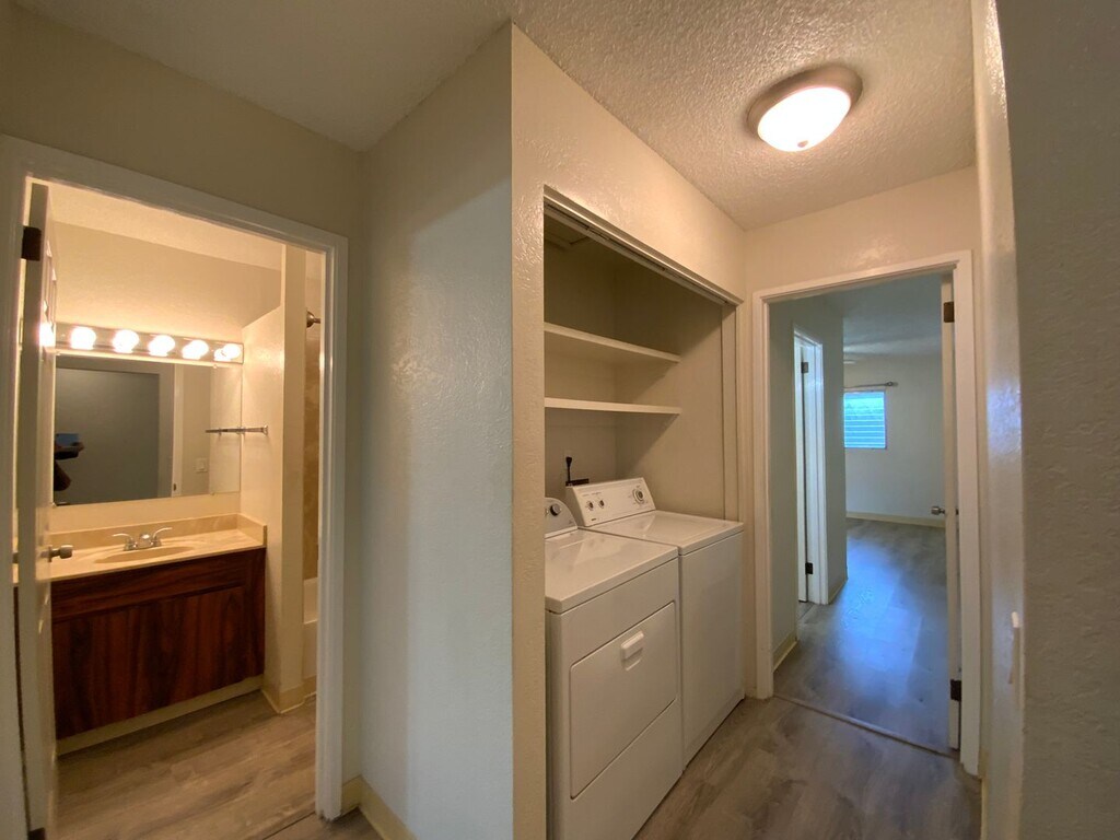 Upstairs unit at College Gardens complex, includes wood vinyl plank flooring throughout. Unit includes a full size washer and dryer inside the unit, ceiling fans in every room. One assigned parking stall right in front of unit. Resident Manager on site, convenient to Leeward Community College, Sam's Club, dining, entertainment, freeway and more!! Renters insurance required. Tenant must provided proof of coverage prior to occupancy. Sorry no pets and no smoking. For more information or showings, please call or text Brandi Oshiro at .