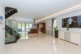 Welcome to this beautifully semi-furnished 3BD/3.5BA home with PRIVATE POOL offering three levels of refined living space with high-end finishes throughout, nestled in one of Weehawken’s most desirable neighborhoods, just ten minutes from New York City. The open-concept layout features sleek porcelain tile floors and a designer kitchen equipped with Miele concealed appliances, a spacious center island with seating ideal for entertaining, and a striking contemporary staircase encased in glass railings connecting all three levels. Floor-to-ceiling glass sliding doors lead to an expansive deck with a retractable awning overlooking an inviting in-ground pool. Upstairs, the second floor offers three bedrooms, a common bathroom and a laundry room. The primary bedroom boasts a luxurious retreat — complete with a spacious bathroom featuring a shower and double vanity, a generous walk-in closet, and direct access to a large private balcony for those morning coffees. The fully finished basement provides a cozy retreat with a wet bar, media room featuring a home theater projection system, recreation and exercise rooms, a full bath, a utility room and generous storage. Additional highlights include radiant heating, LED lighting, Nest thermostats, security cameras, a video intercom, heated towel racks, brand new split AC units on the main floor and automated blinds. A bus stop with buses to NYC is just two blocks away, and an assigned parking space is included (at additional cost of $150/month) in a gated lot across the street. This exceptional home is truly a must-see.