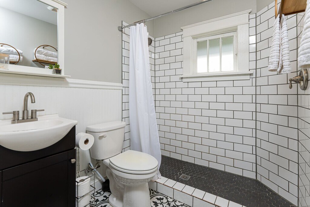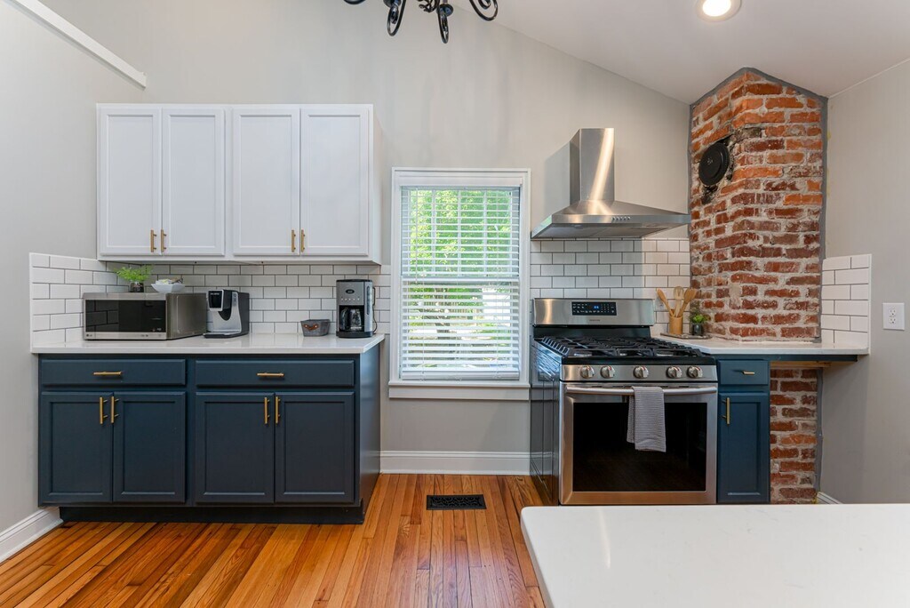 Renovated 1920s bungalow in the historic Montford neighborhood. Enjoy the Reed Creek Greenway, restaurants, coffee shops, downtown Asheville attractions - all within blocks! Beautifully modernized kitchen and bathrooms, updated fixtures and finishes, and ample recessed lighting throughout. Please note, the house is unfurnished; furniture shown is not included. A charming front porch and brick patio provide a welcoming entrance off of the tree-lined street with sidewalks. Hardwood floors are throughout the main level great room and bedrooms. The living room features vaulted ceilings and a decorative (inoperable) fireplace. The beautiful open kitchen has granite countertops including a breakfast bar, tile accents, a large under-mount sink, and nice stainless appliances including the gas range, refrigerator, and dishwasher. Two bedrooms are on this main floor, and the hall bathroom has attractive tile and a large walk-in shower. The laundry closet is off of the hall, and the stacked washer and dryer are included. Downstairs, find a large second living room and a mini-kitchen offering attractive cabinetry and a small sink. Floors are stained concrete. Bedroom #3 is located on this level and is spacious with a deep closet. The lower-level bathroom is nicely tiled with a large vanity and a walk-in shower. A second laundry closet downstairs includes an additional washer and dryer - these appliances will remain for tenant use but will not be repaired or replaced by the homeowners. Landscape maintenance is included. Central heat and air conditioning (natural gas furnace and electric a/c.) Tenant responsible for all utilities (including natural gas, electricity, and water/sewer). On-street parking available on both sides of Flint St; no off-street parking included. No cosigners. Available with a year lease. No smoking. One small dog, 25 lb or less, negotiable.