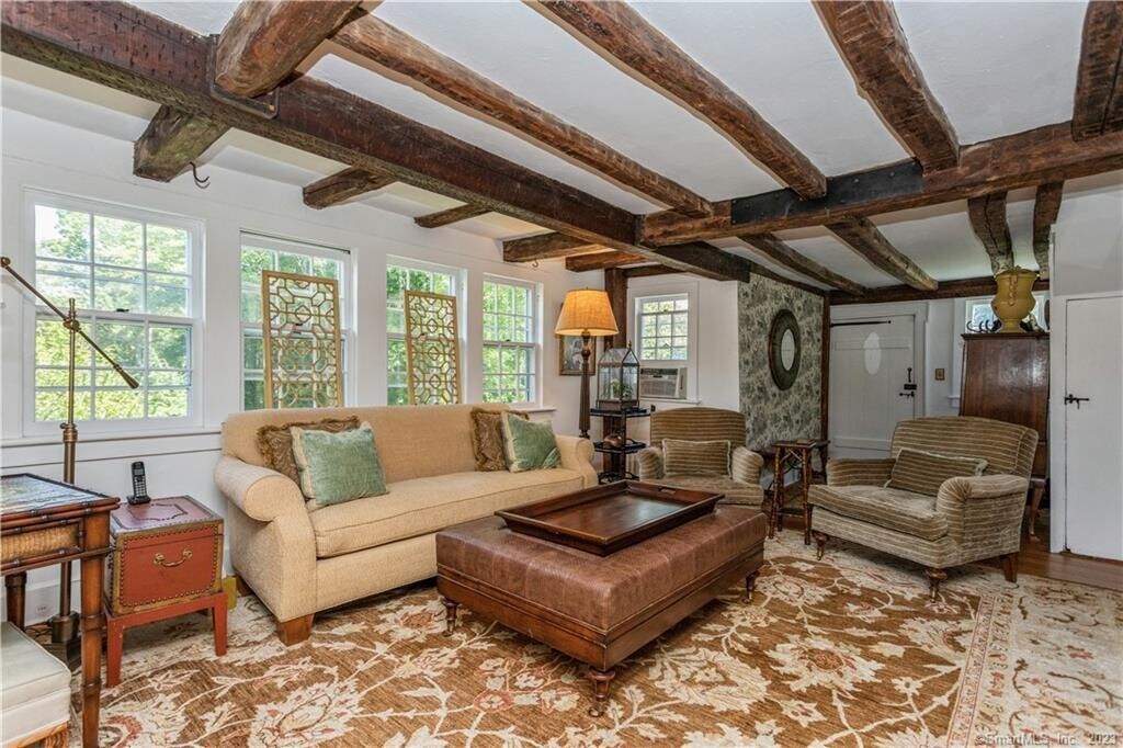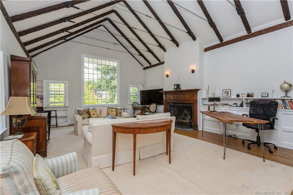 Call for Availability - Now with brand-new central air conditioning! Historic Luxury Meets Modern Living in Old Hill, Westport. Stroll to downtown Westport from this award-winning historic gem in coveted Old Hill. The David Judah House, c. 1760-honored with the 2016 Helen Muller Award for outstanding restoration-seamlessly blends timeless character with modern sophistication. Meticulously updated, the home features a chef's kitchen with Carrara marble countertops, premium appliances, and generous storage, opening to an entertainer's lounge with wet bar, beverage fridge and TV - ideal for movie nights or cocktail gatherings. French doors lead to an expansive deck and manicured backyard, perfect for al fresco dining and summer soirees. The vaulted family room and beamed living room, each with a fireplace, provide refined spaces for relaxation. The first-floor primary suite offers privacy, two fireplaces, a dressing room, and a luxurious updated bath. Upstairs are three bedrooms and two full baths, while a lower-level suite with full bath and walkout is perfect as a guest room, gym, or office. Additional features include a 3-car garage with EV charger, lush landscaping, and included snow removal. With sidewalks to vibrant downtown Westport, this rare rental delivers a luxury lifestyle in a truly exceptional setting. MLS# 24116963